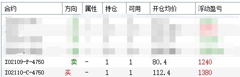 8/4尾盘建仓1组混合空头(卖开 IO 8月4950购 + 买开 IO 9月4950沽 各1手),