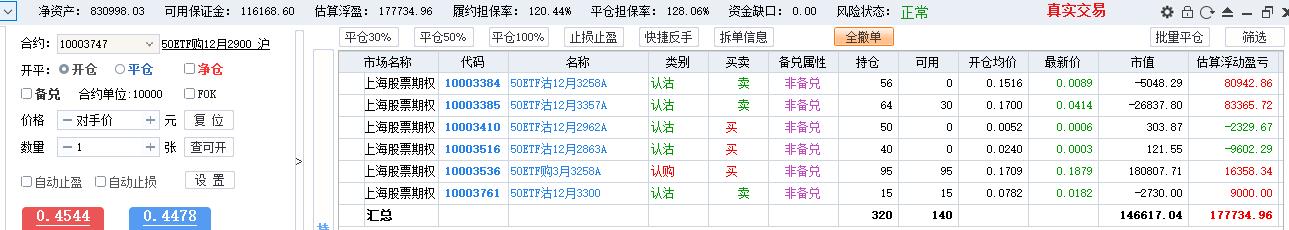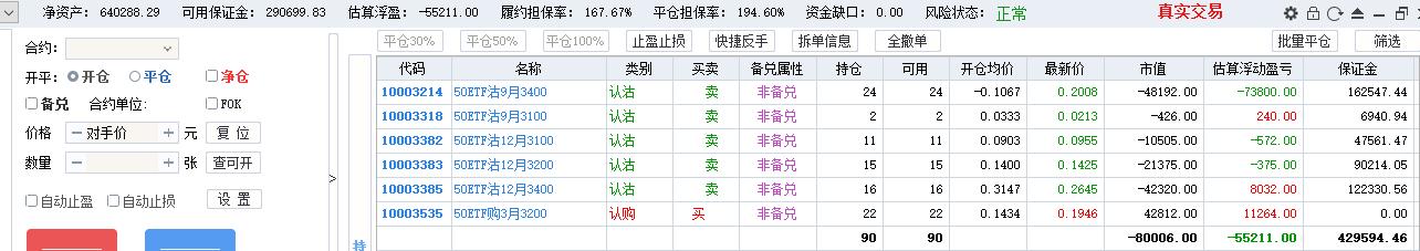 当前持仓95张3月3258A 买购, 12月 135张 卖沽。还是合成多头的姿势。 90张废纸买沽,按归零算了。