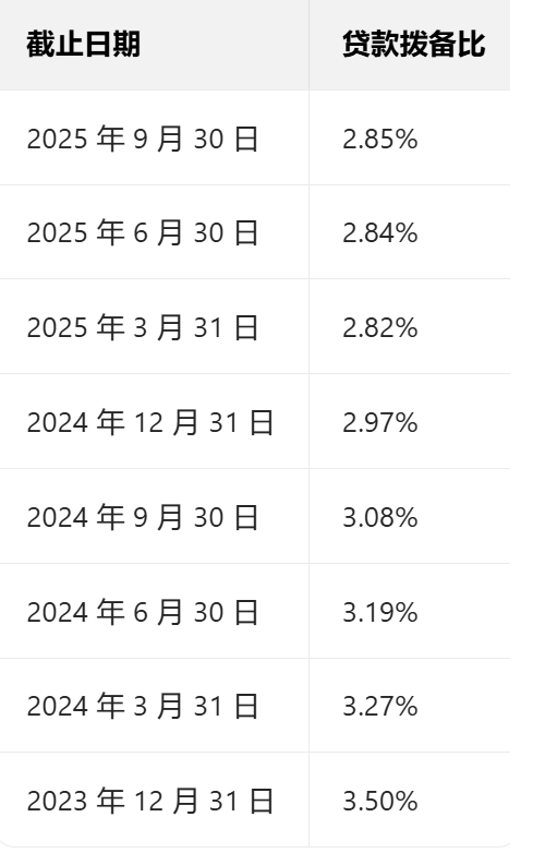 拨备比之前为 2.457994 %,现在为2.455380% ,略差