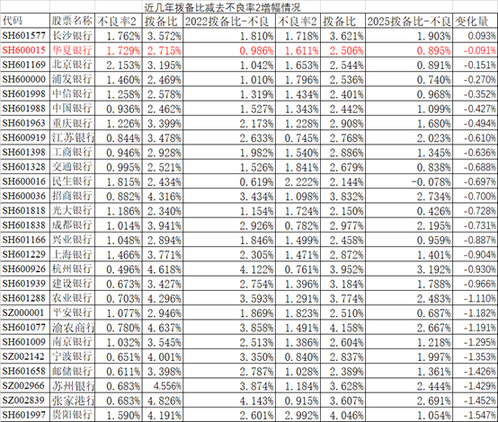 从表中可以看出来,华夏银行是少数几个资产质量变好的银行之一。