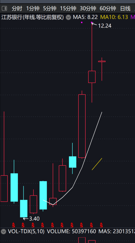 从这个表格中选择股息率前 10的银行, 等权重买入, 定期再平衡, 定期轮动, 应该有超额收益不会,以前我做过测算,长期下来的结果不如持有优质的银行股。市场对0.几%-1%的股息差距不会很敏感,除非到了极端的情况比如22-23年时几大国有行的股息去到了6%以上,才会吸引大资金来收货。3.几%-5%这个区间的股息,场内资金更加青睐成长性,看看成都、杭州、宁波、江苏、南京行,这几个的年线。还有前几年的招行。如果这样轮动有超额收益,那就证明赚钱太容易了。人人都这样做就会将超额收益很快就扯平。而且这样轮动的摩擦成本不小。