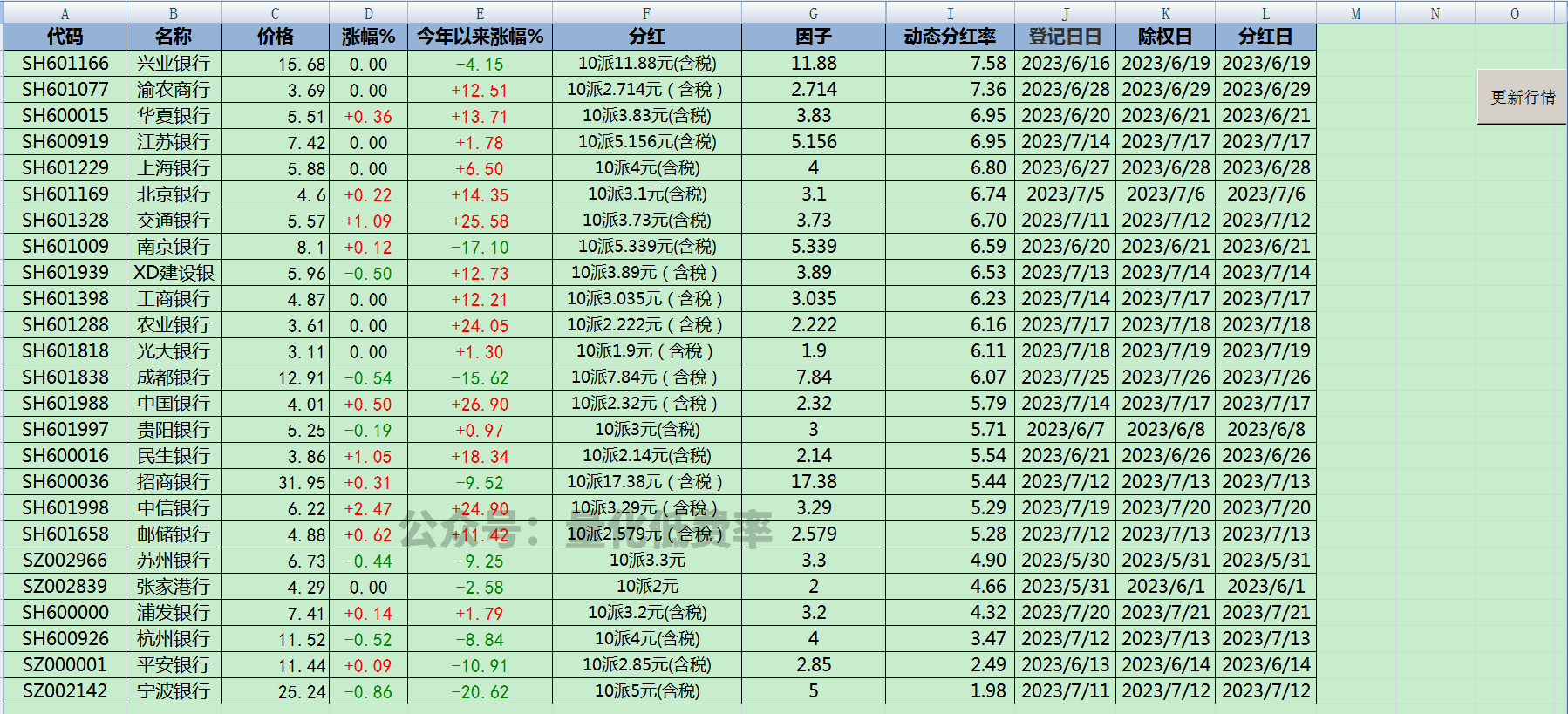 SH601166 兴业银行 10派11.88元(含税) 2023/6/16 2023/6/19