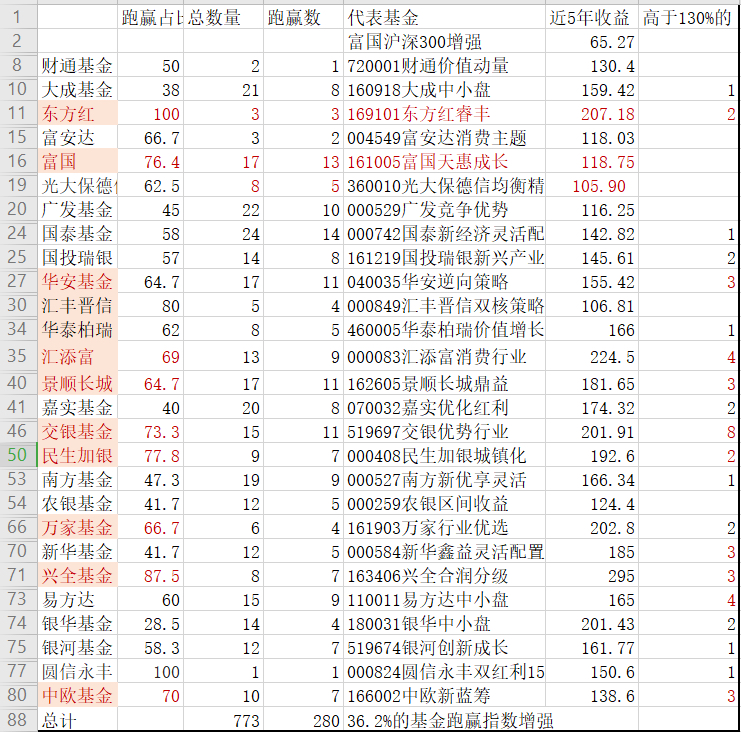 那些超过50%比例跑赢指数增强的基金公司,总体实力业绩总好过没一个可以跑赢的。