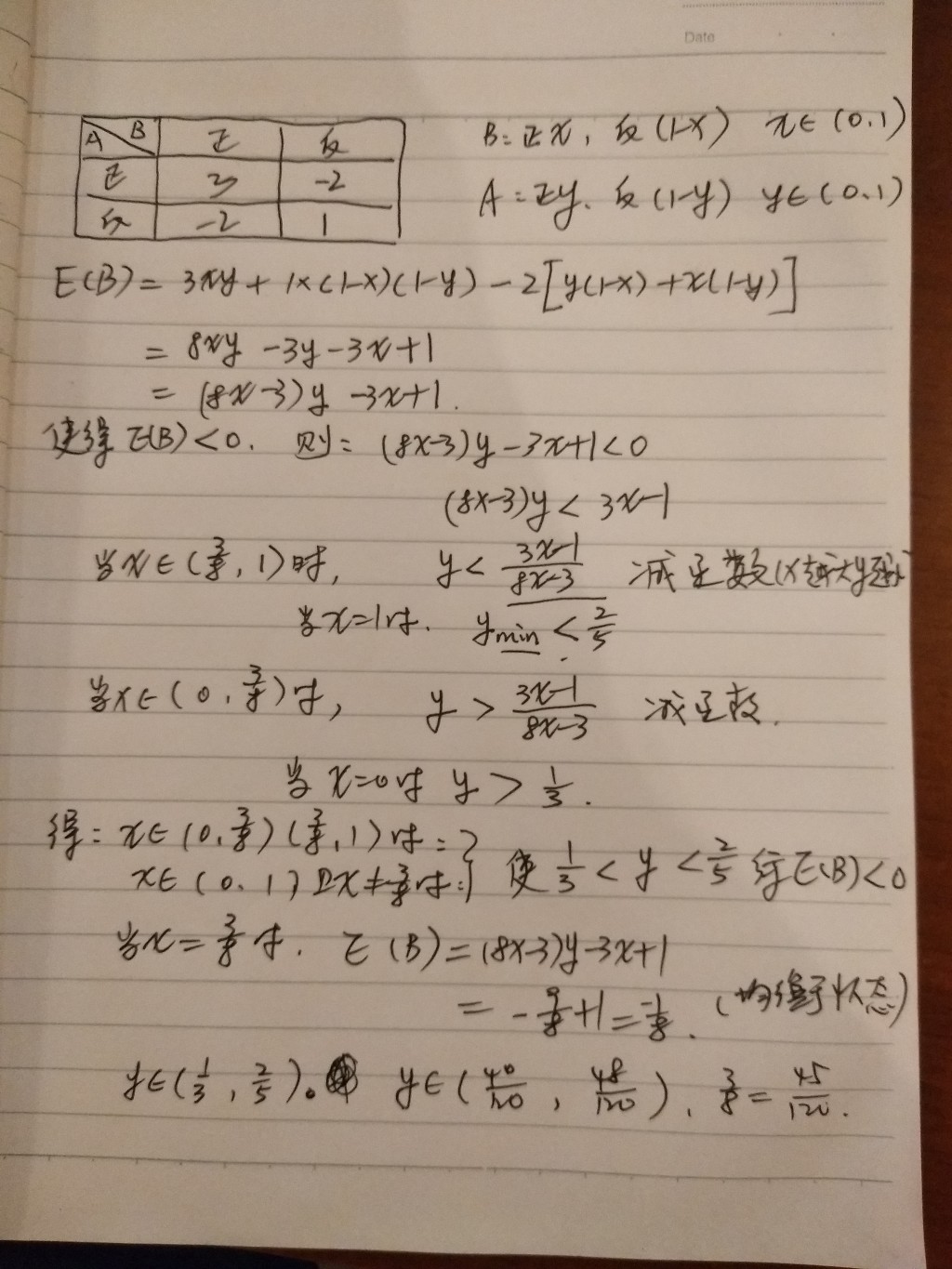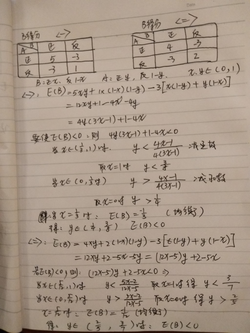 我的帖子所说的博弈是对赌,互摸口袋的博弈。不存在合作的可能。