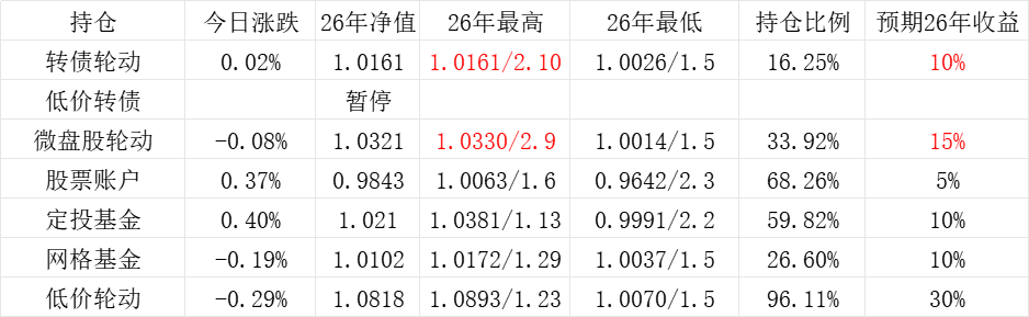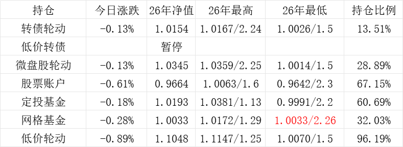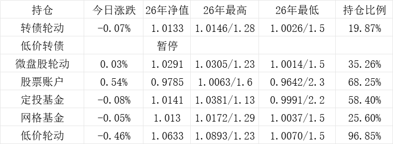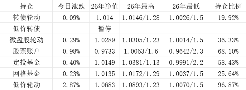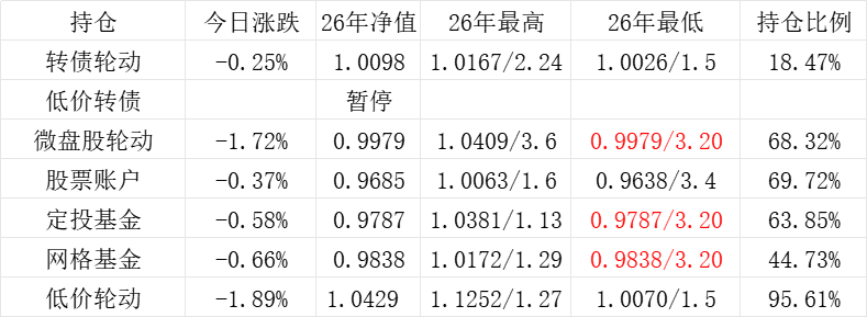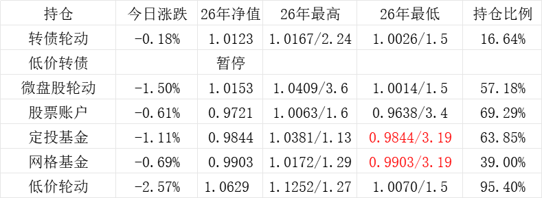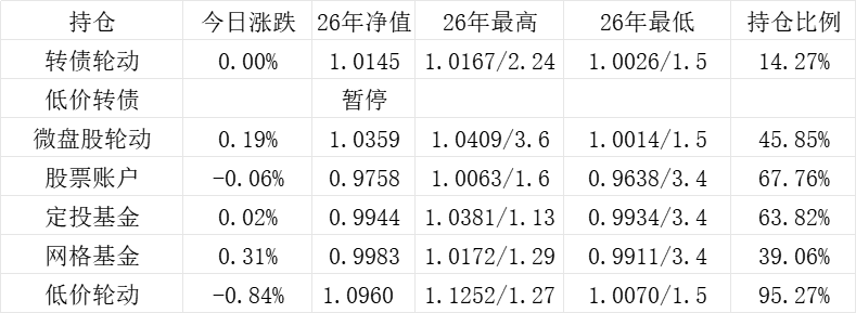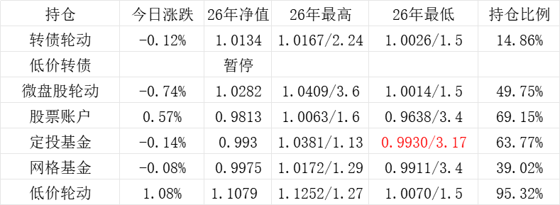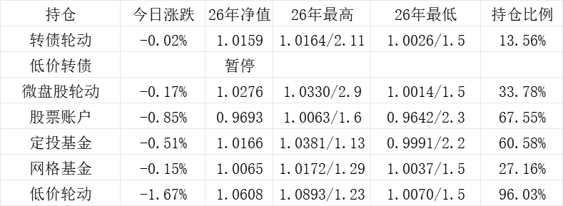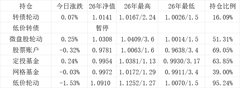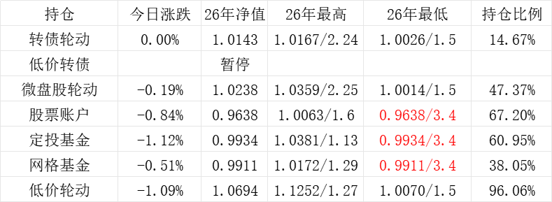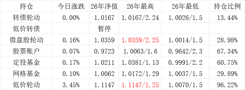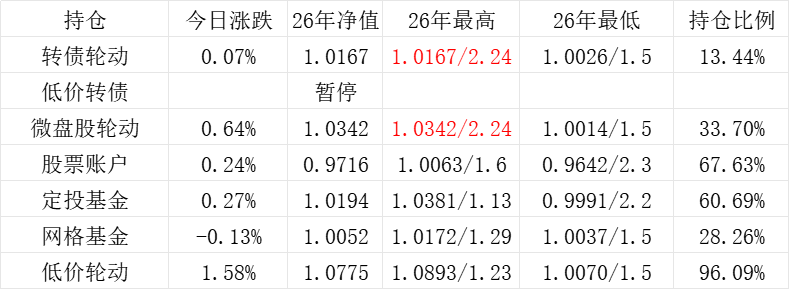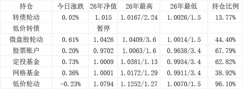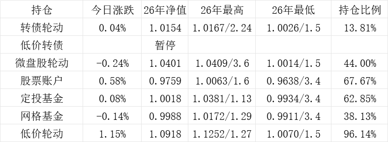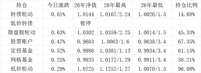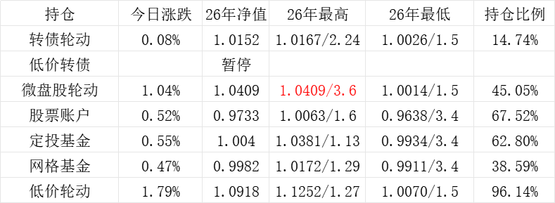红利账户、微盘股账户和转债账户再创新高。