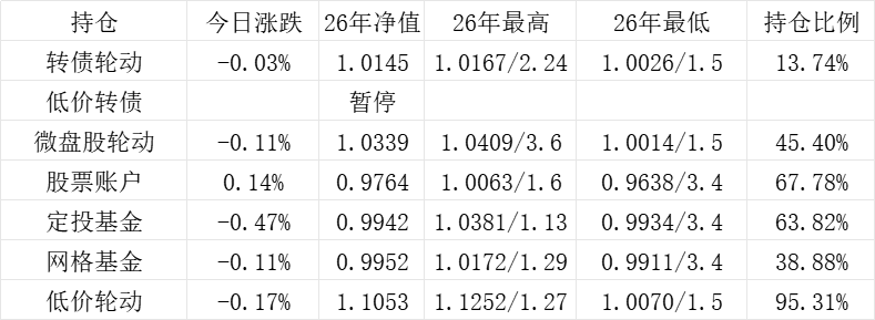 红利账户、微盘股账户和转债账户继续创新高。