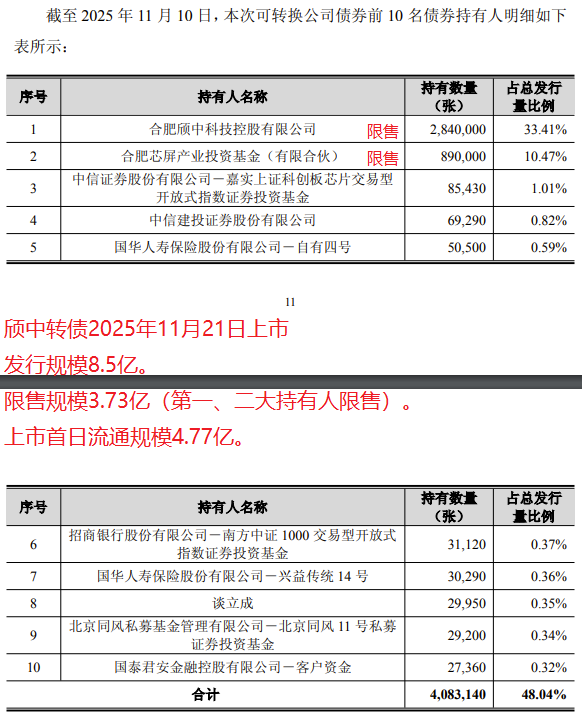 限售规模7.718655亿(第一、二、三、四大持有人限售)。