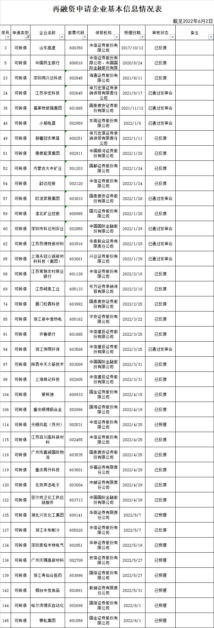 jsl待发数据页面对照zjh(每周更新)和沪深交易所(每日更新)的可转债申请进度,发现有几个漏掉的,就写在这里。发行规模可能也不对,在审核通过前我懒得看。
