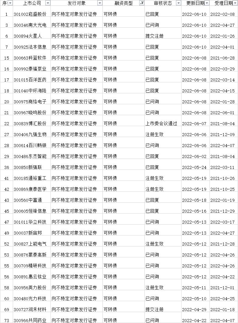可转债发行审核进度: