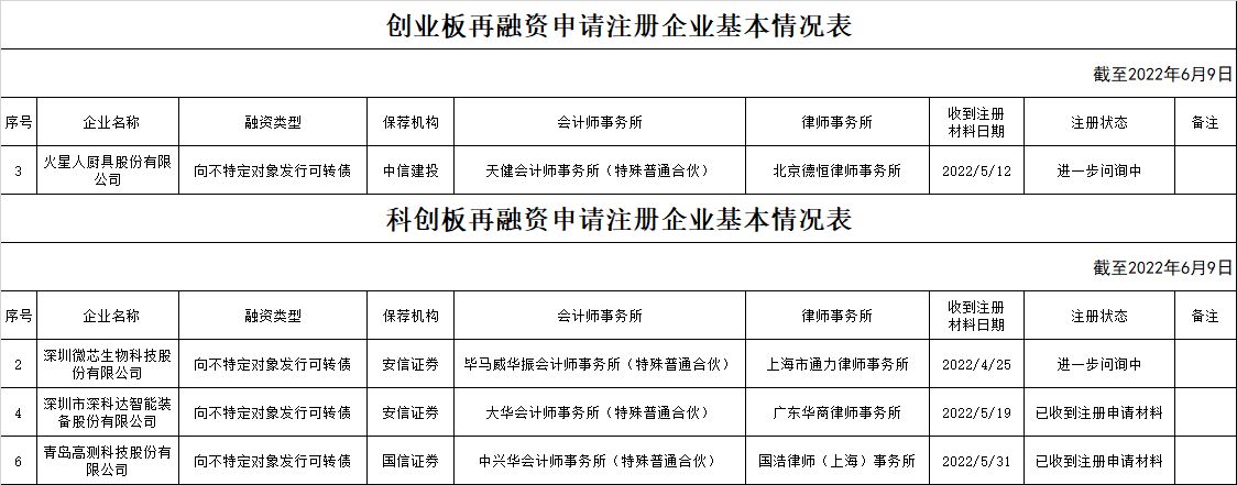 zjh注册:创业板南大光电、泰福泵业、东杰智能、惠云钛业、蒙泰高新、金沃股份、法本信息、商络电子;科创板的长远锂科、利元亨