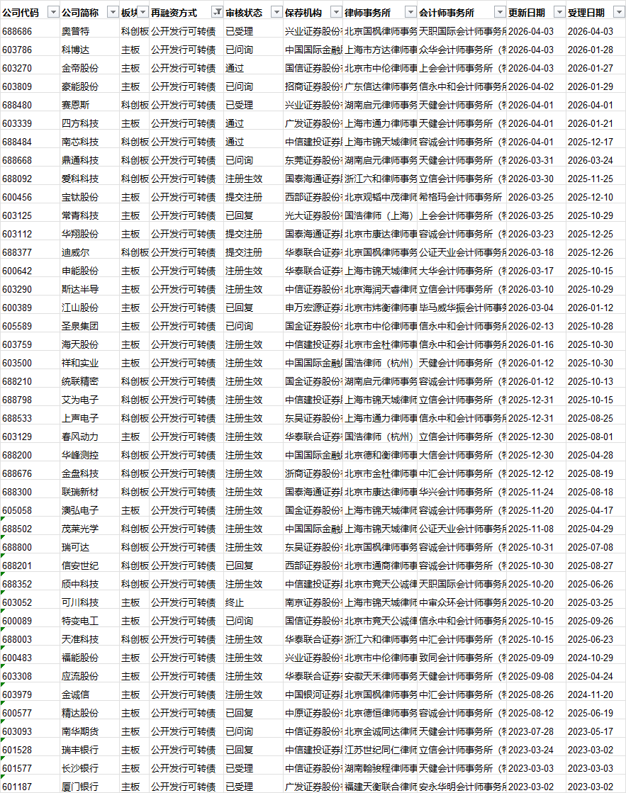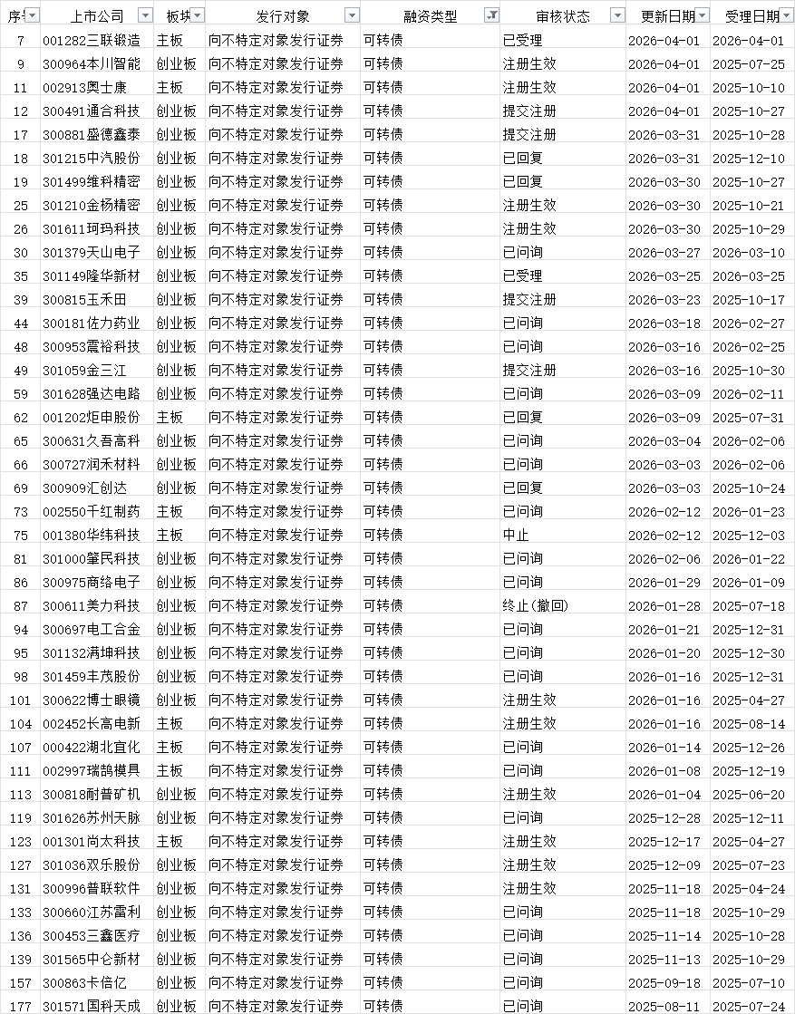 可转债发行审核进度: