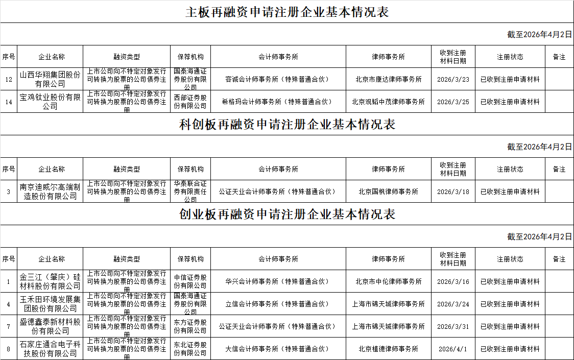 zjh创业板提交再融资注册申请企业基本情况