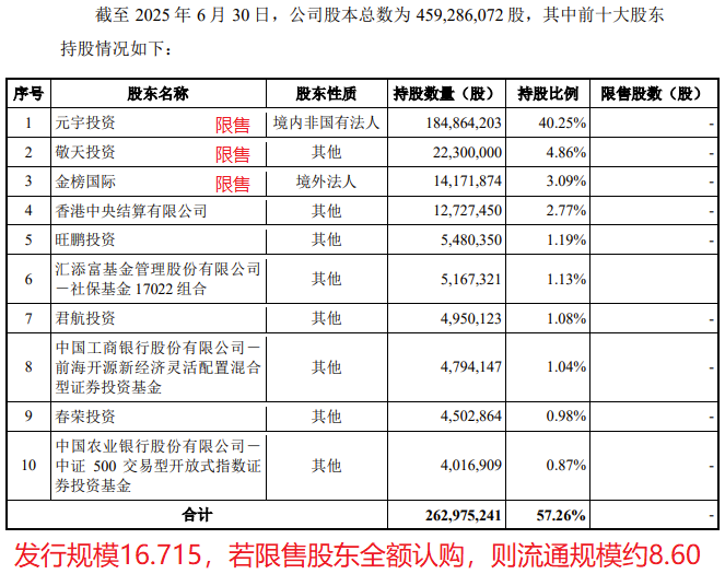 限售规模0.912199亿(第一至第十大持有人限售)。