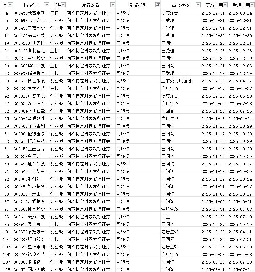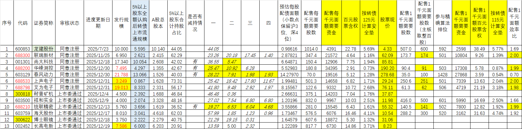 更新时间2025年12月31日。待发转债埋伏配债测算(更新至20251231) 图源:@知非丶一套不严谨的潜伏配债评分卡系统https://www.jisilu.cn/question/479915 可转债审核流程见:上交所发行上市审核http://www.sse.com.cn/listing/renewal/refinancing/深交所发行上市审核信息公开网站http://listin...松原安全,调整了发债数量。