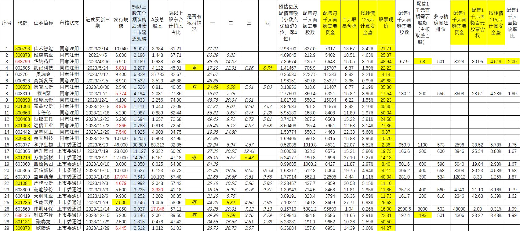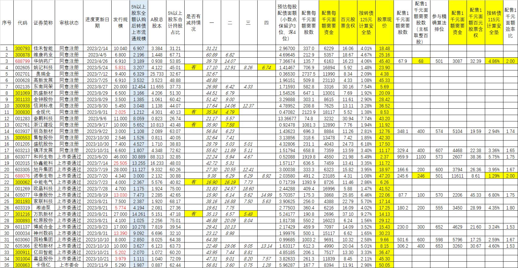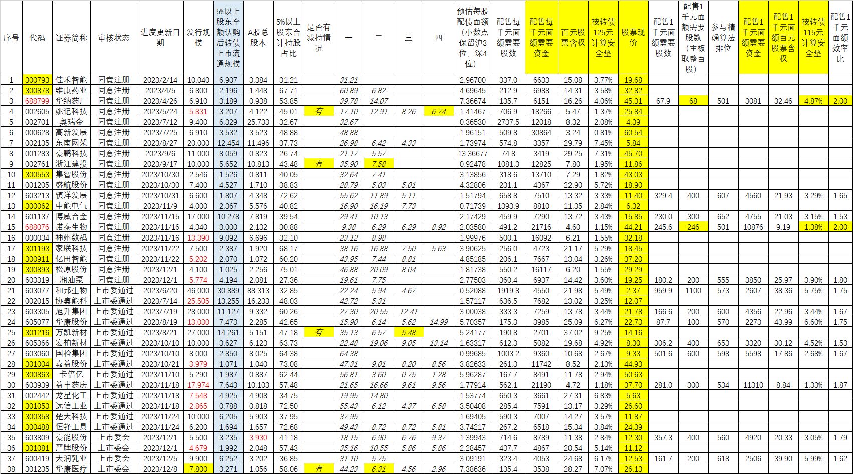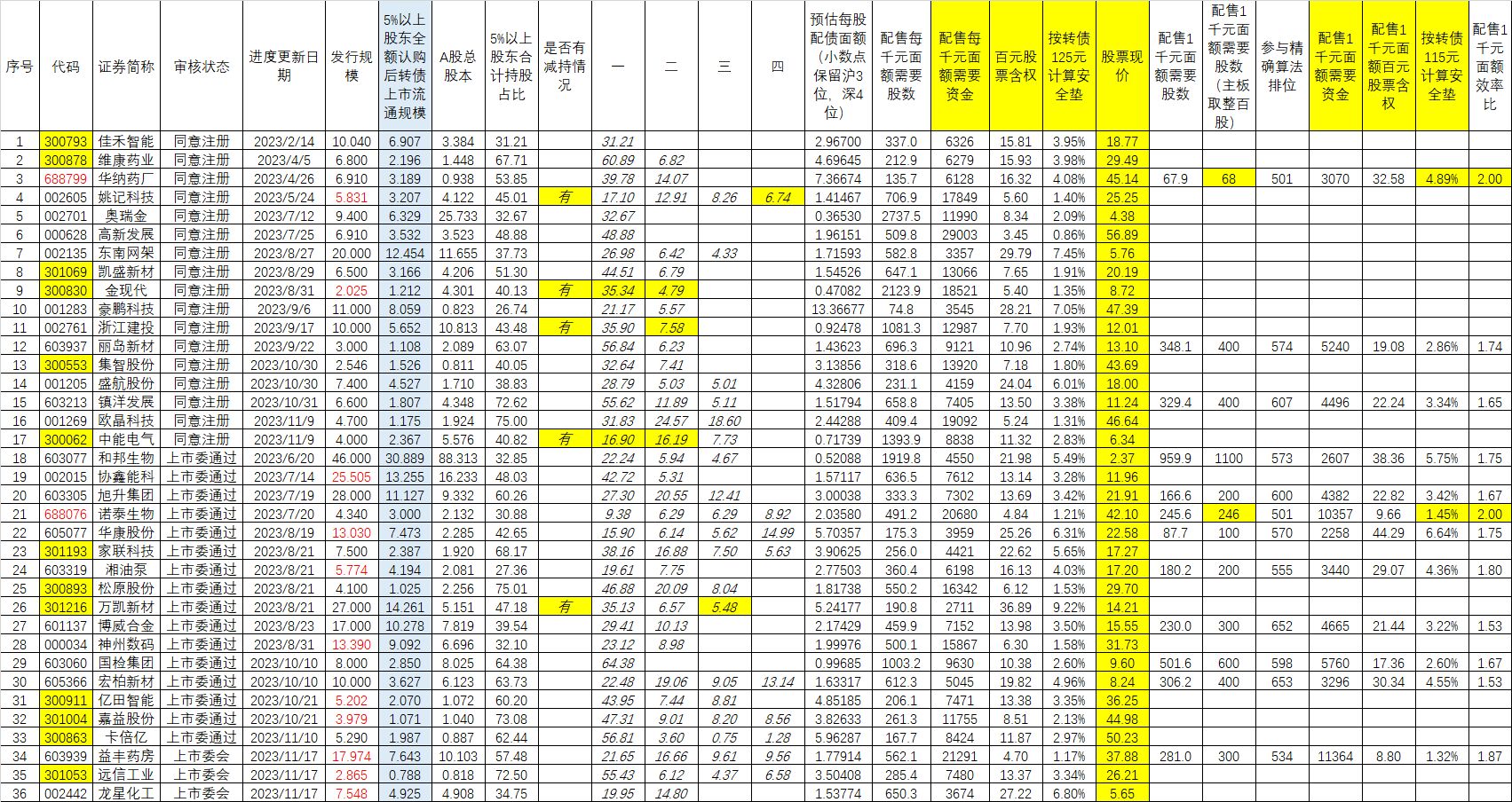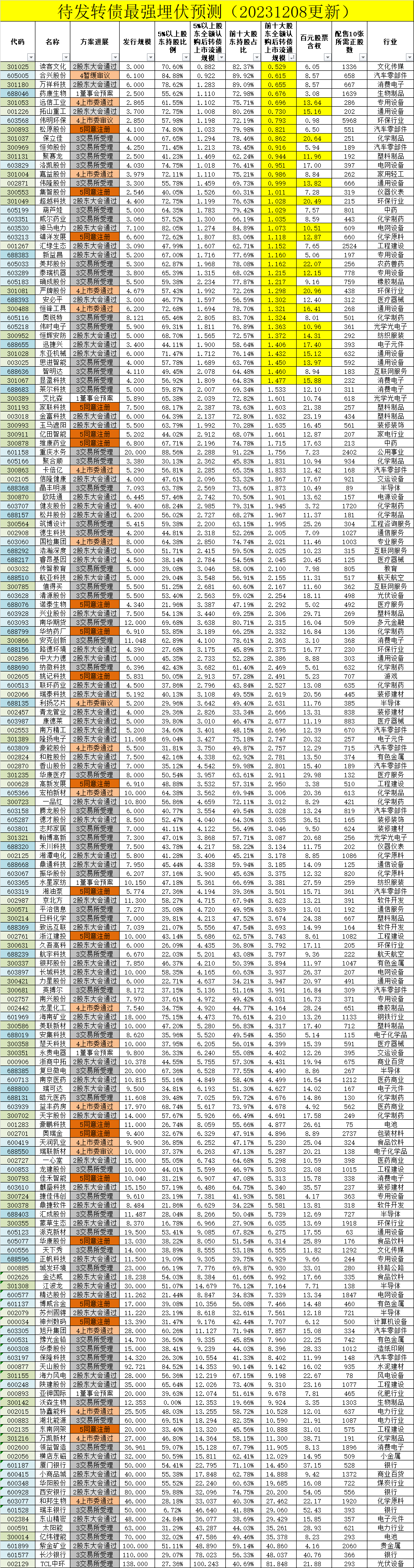 更新时间2023年8月18日。配债需警惕,警惕一手党翻车,警惕配债后正股超预期下跌,警惕小规模转债原股东弃购率高。可转债审核流程见:上交所发行上市审核http://listing.sse.com.cn/announcement/commiteenotice深交所发行上市审核信息公开网站http://listing.szse.cn/projectdynamic/refinance/index.ht...感谢提醒