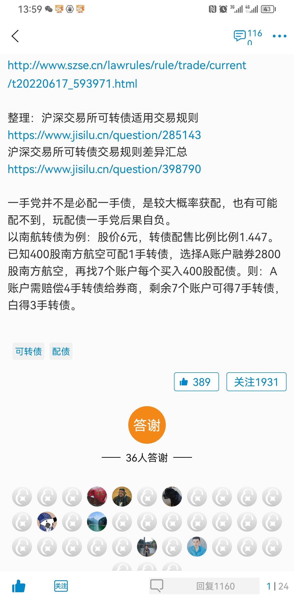 以南航转债为例:股价6元,转债配售比例比例1.447。
