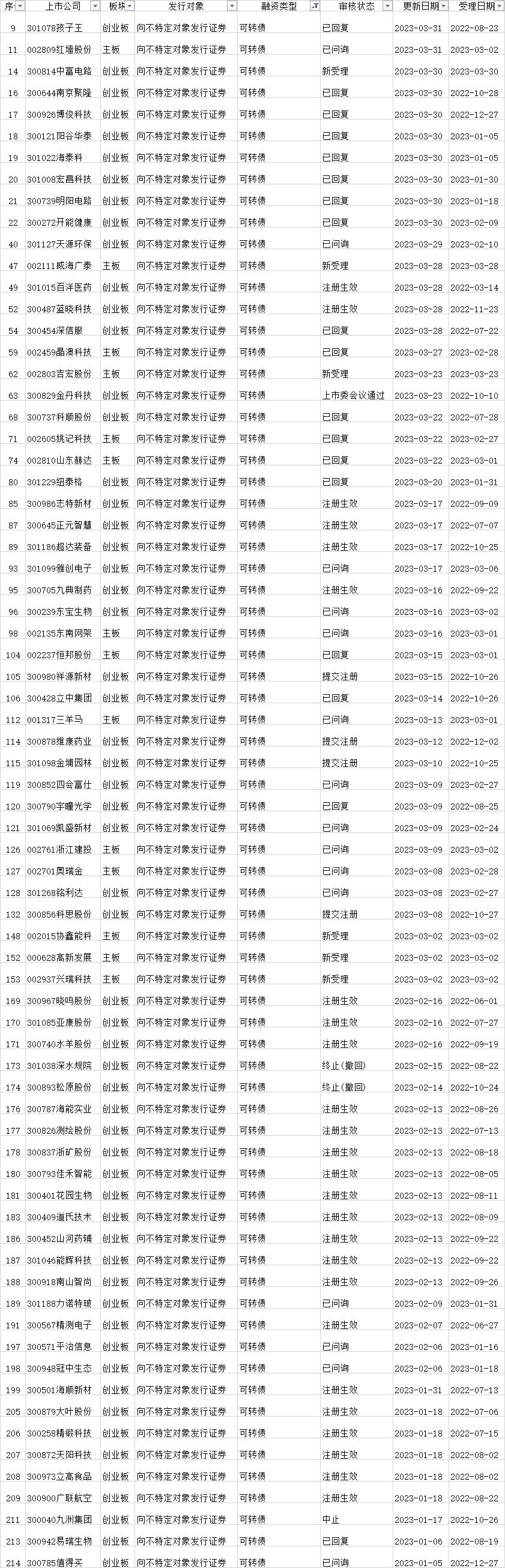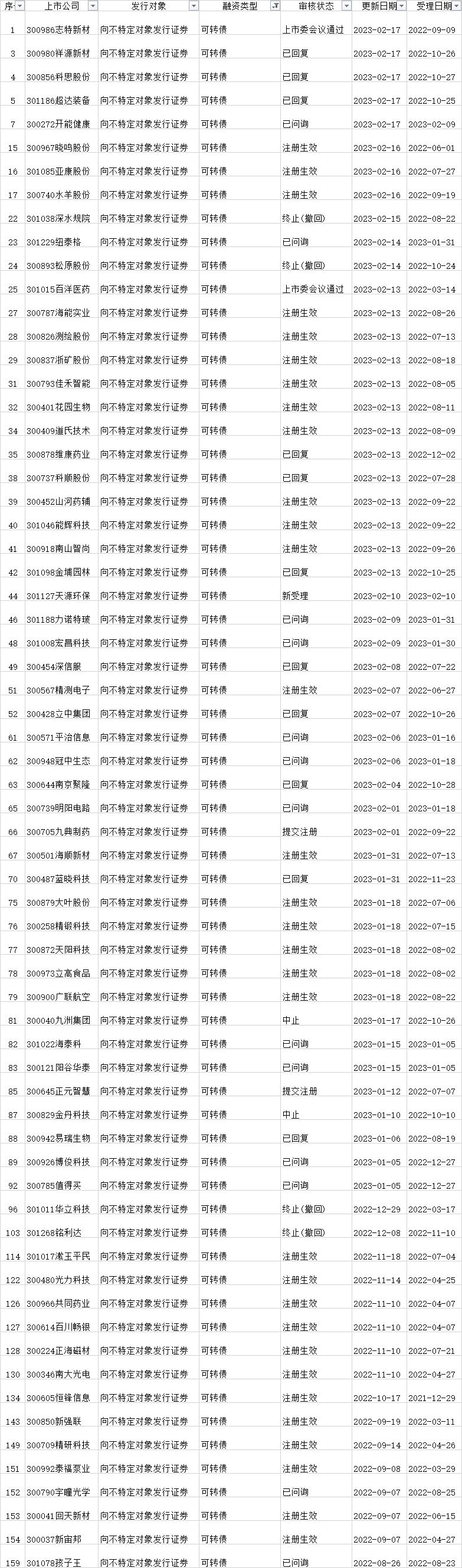 深交所上市审核委员会2023年第5次审议会议公告http://listing.szse.cn/announcement/commitee/detail/index.html?id=49145深圳证券交易所上市审核委员会定于 2023 年 3 月 2 日召开 2023 年第 5 次上市审核委员会审议会议。现将有关事项公告如下:(二)西安蓝晓科技新材料股份有限公司(向不特定对象发行可转债)主板三个月就审了九家可转债,真是懒到家了。