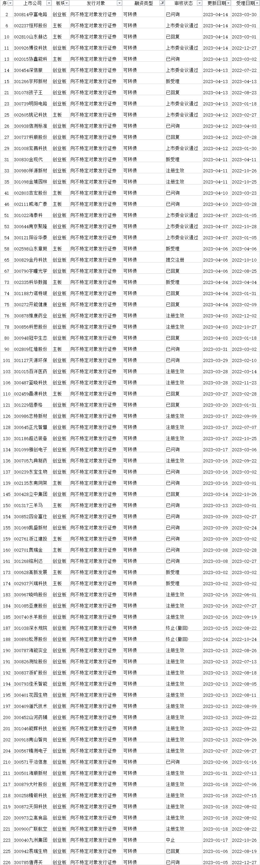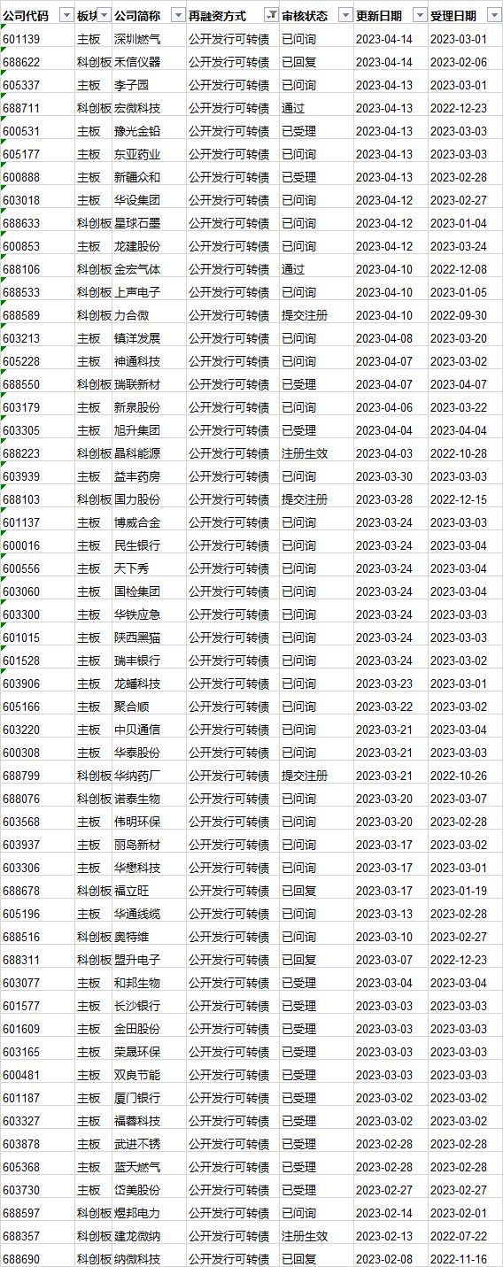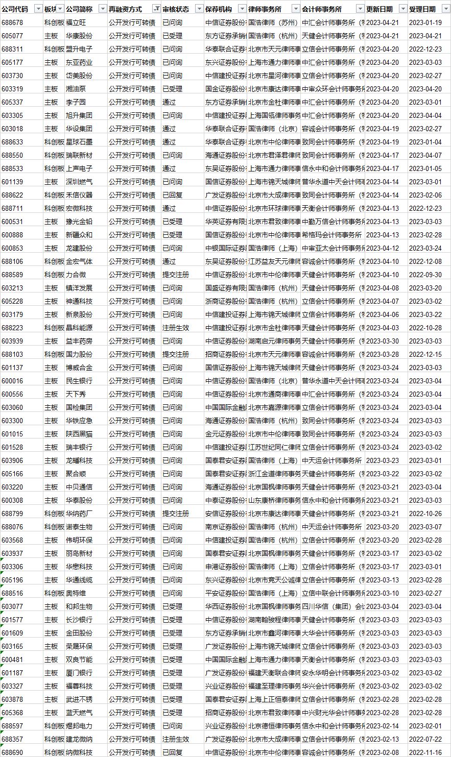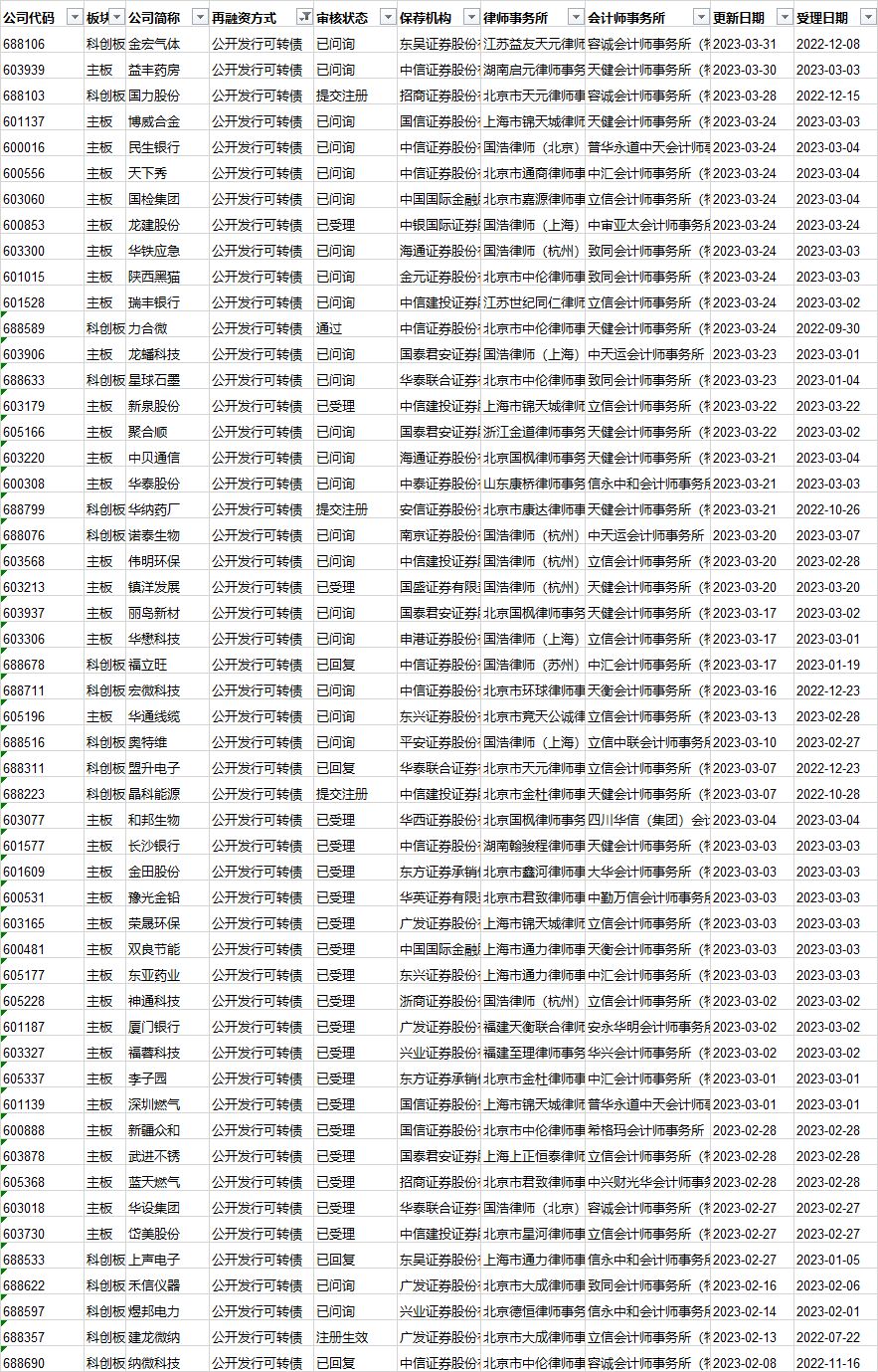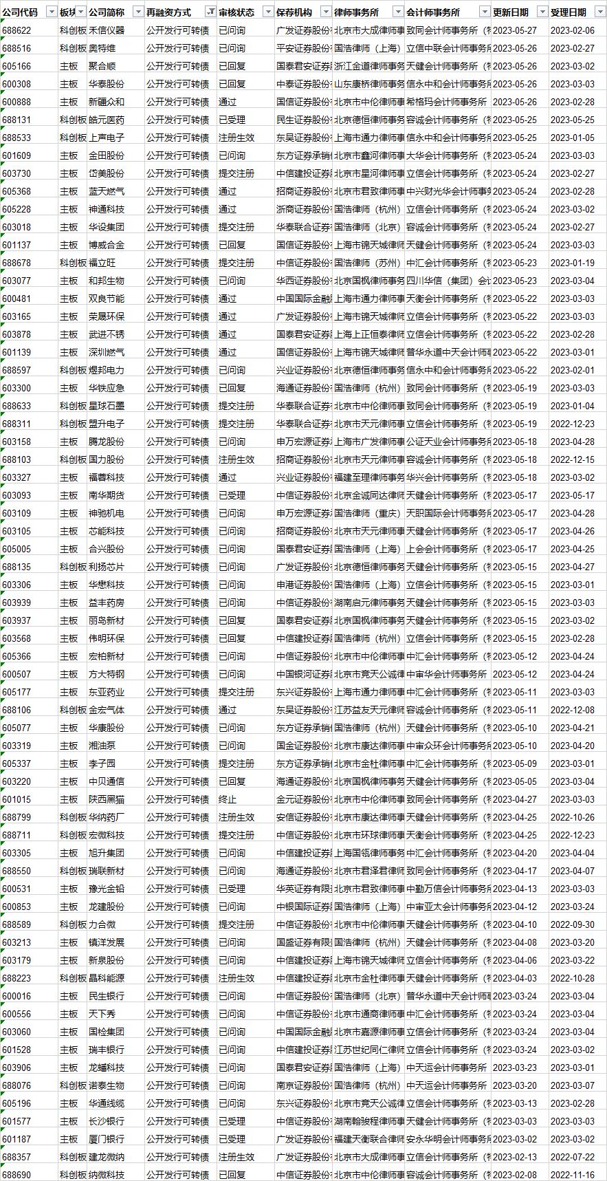 全面注册制实行后,再融资(可转债等)审核进度在交易所网站实时更新。zjh网站不再每周更新审核进度,但继续每周更新注册批复进度。因此本帖不再有每周更新必要,大家在交易所网站随时看、jsl待发转债网页随时查。