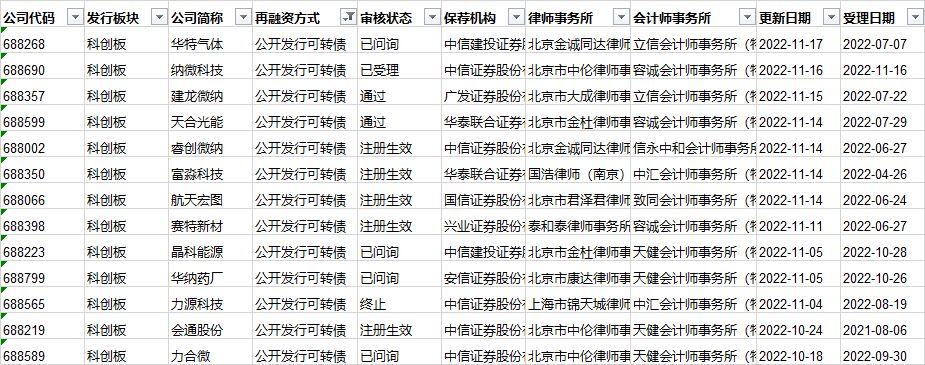 可转债、可交换债未获批文、批文到期失效、发行失败的统计。