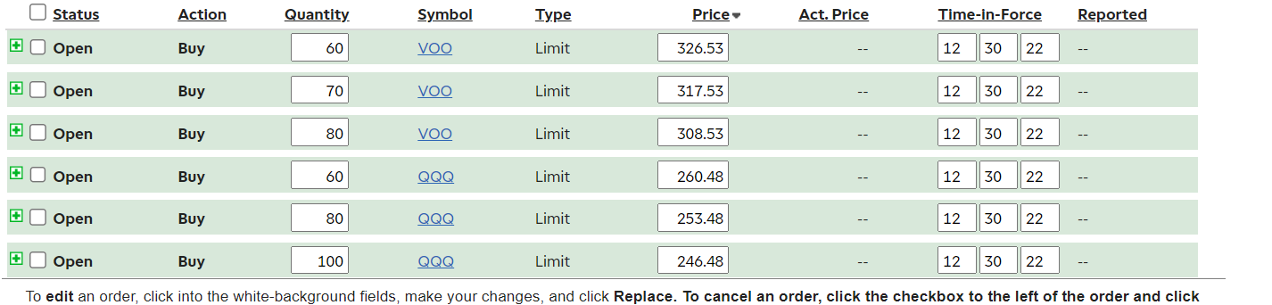 SPY和QQQ 准备了$60: 这几天美股暴跌,准备开始逐步建仓SPY和QQQ (对的,本人就是那种一路买一路跌,一路跌一路买的超级无敌韭菜),目前每跌2.5%建仓2%仓位,等跌破高位20%会翻倍建仓(每跌2.5%建仓4%),跌破30% 再翻倍(每跌2.5%建仓8%),跌破40%一次性满仓,之后每跌2.5% 用margin建仓5%。目标超长期持有,25年以后作为退休收入用(但是本人不支持无脑buy & hold,这个后面会把我的想法写下和大家讨论讨论)。 目前仓位1.5, 亏损4%