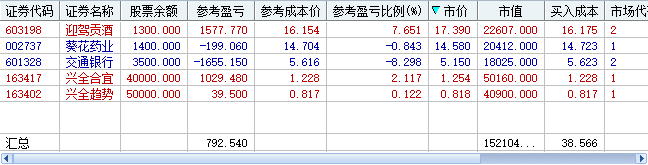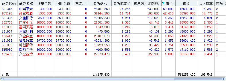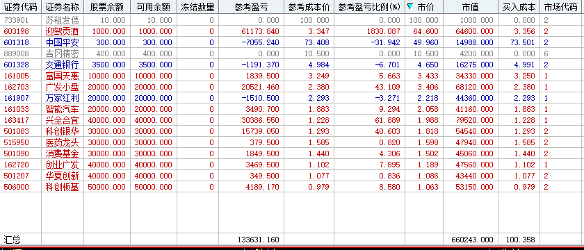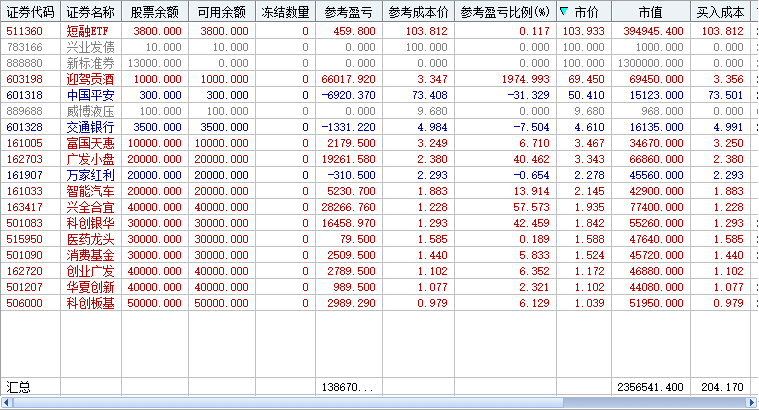 a股持仓。3个高息股走势萎靡,证明了我孱弱的选股能力,今后找机会处理掉。把主力仓位切换到场内主动基金