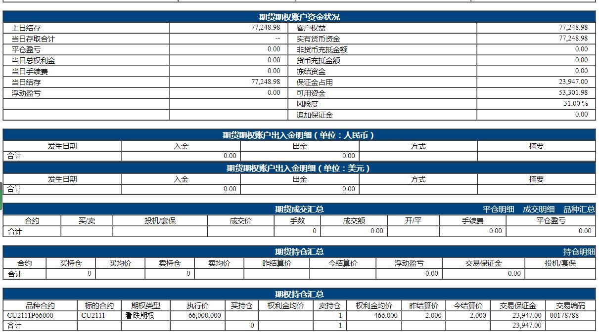沽做了一手,总体还是铜看区间,不上不下,期权持有到期,股指也看区间