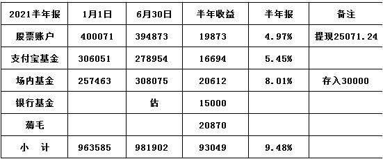 做个收益记录。下半年保平即可。