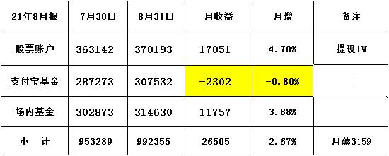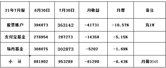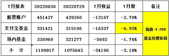 2、7月场内基金亏1.7%,支付宝基金亏5%,股票最惨 亏11个点