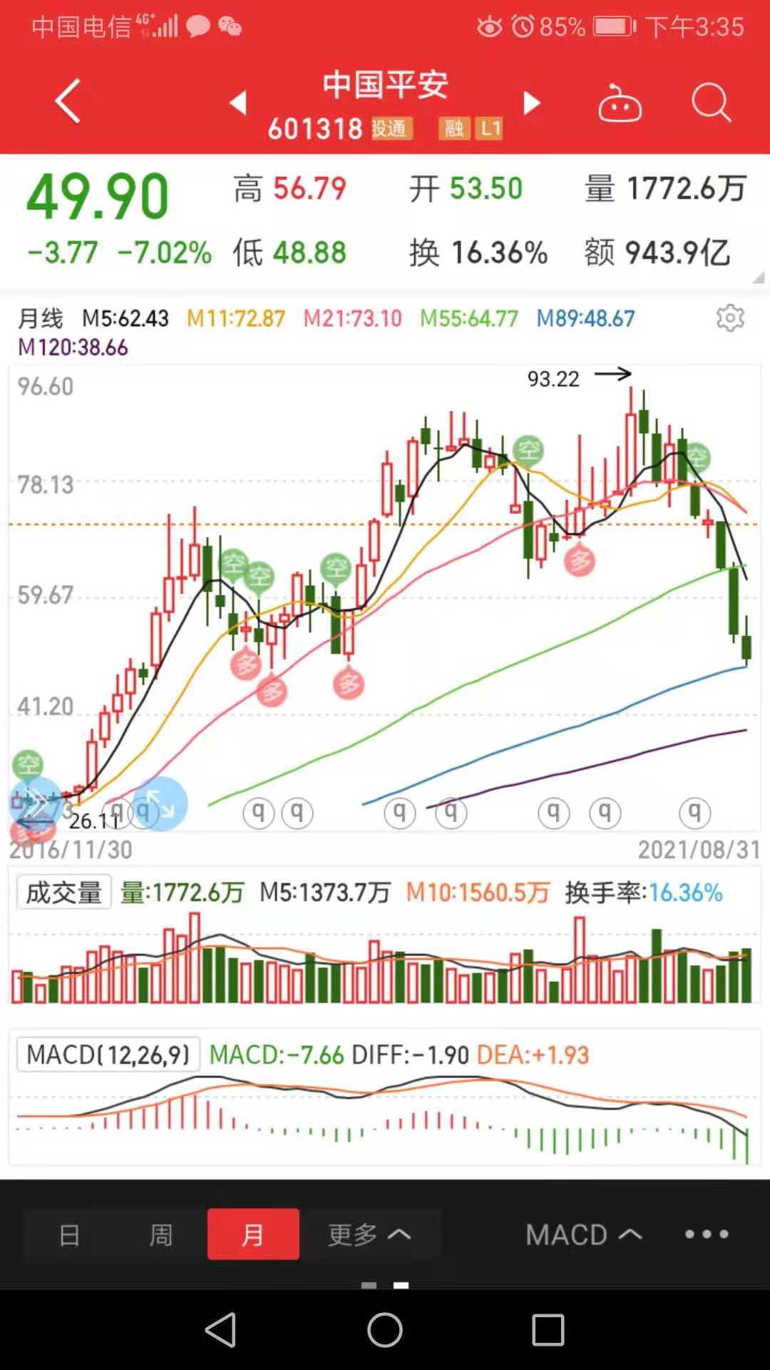 从80以上开始重仓平安,滑铁卢之战