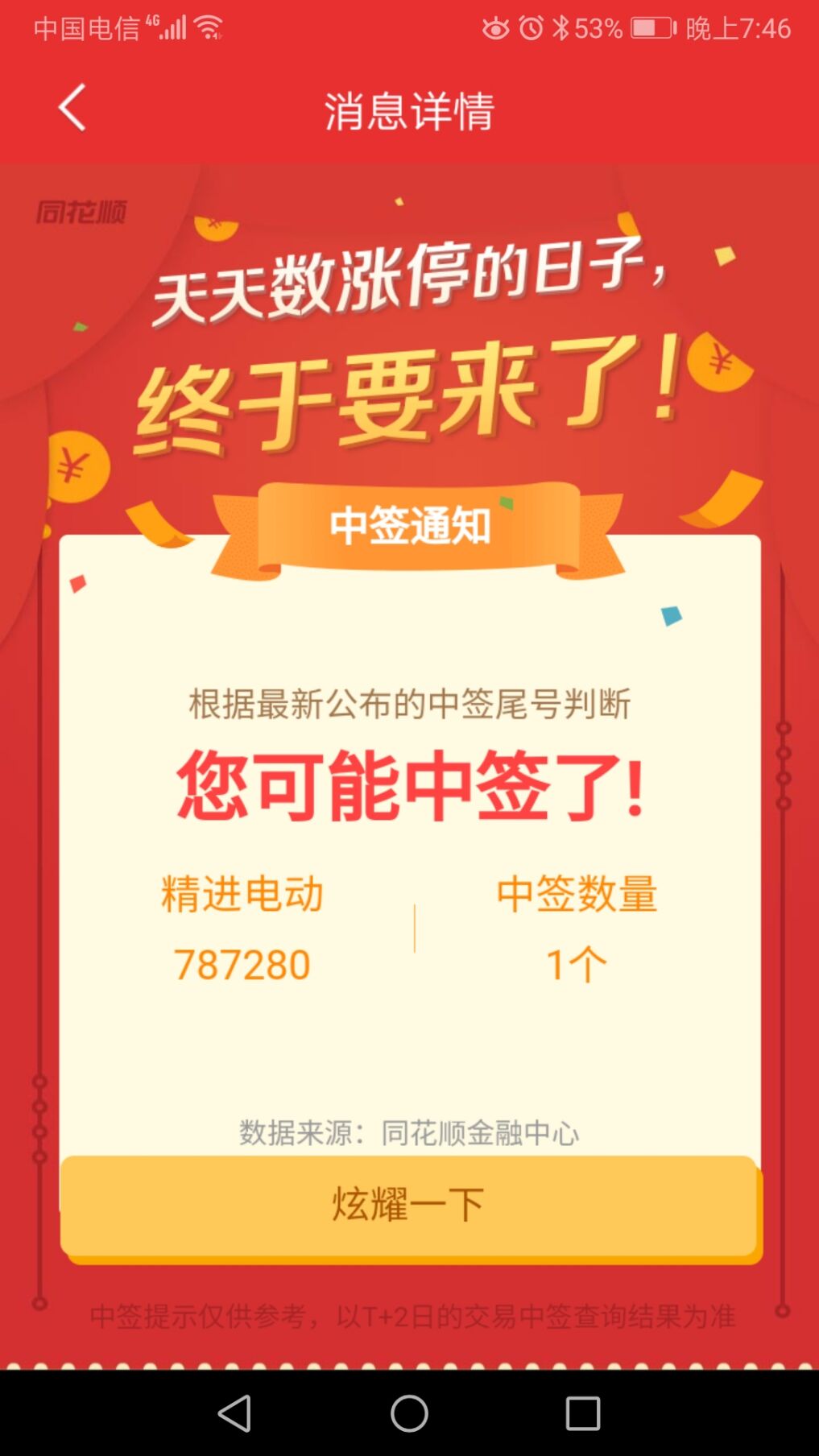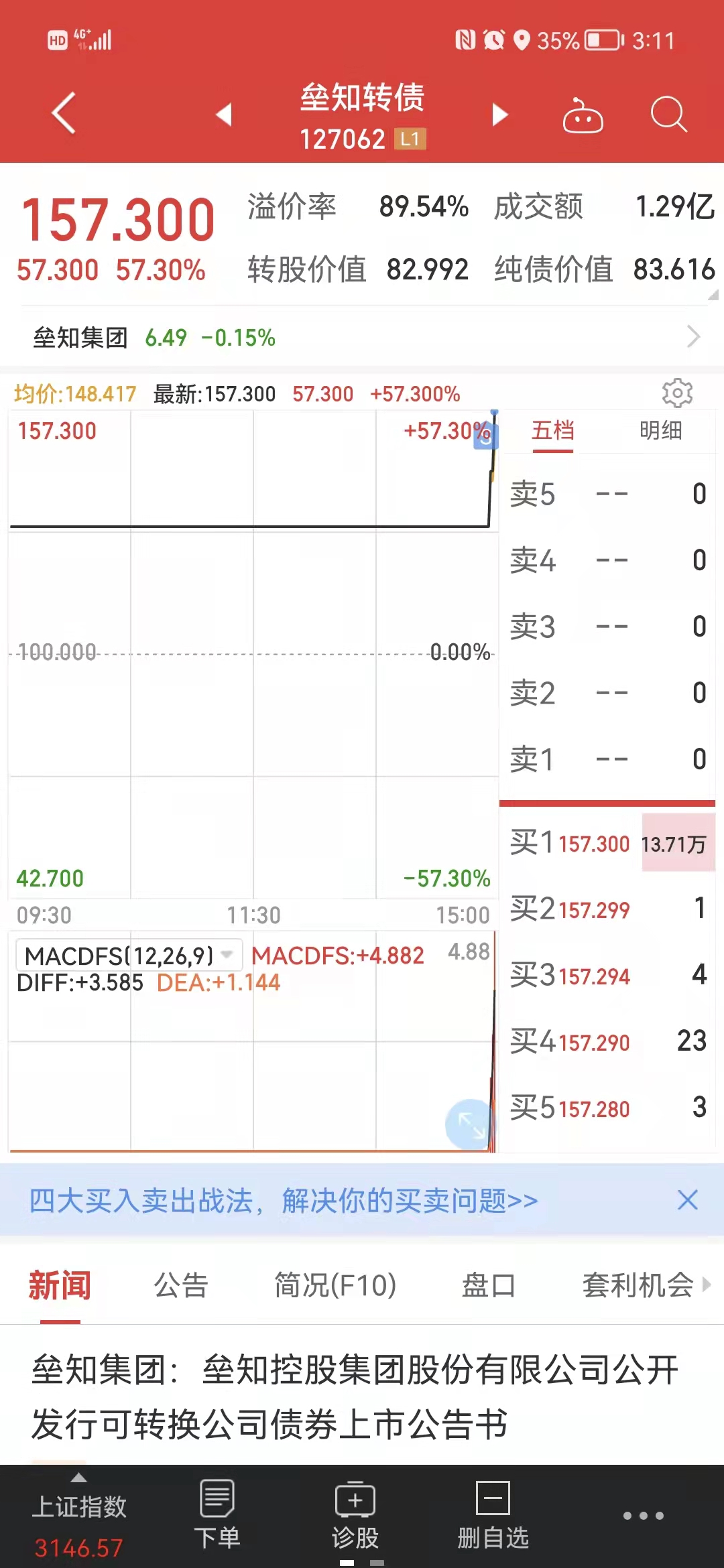 场内户前期埋伏了一个转债华通转债,昨夜浙江版块出利好,开盘前预挂113就卖出了,成妖涨20%多到134,可惜。