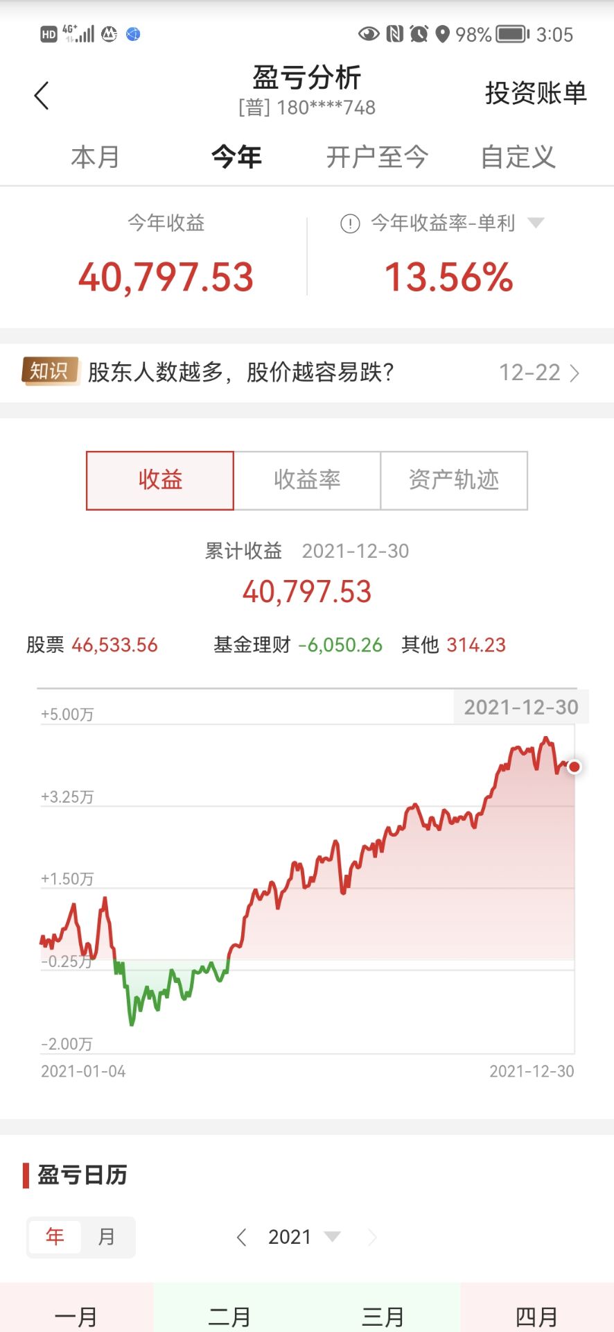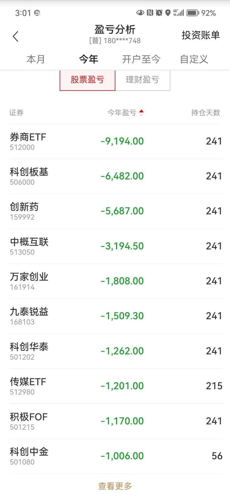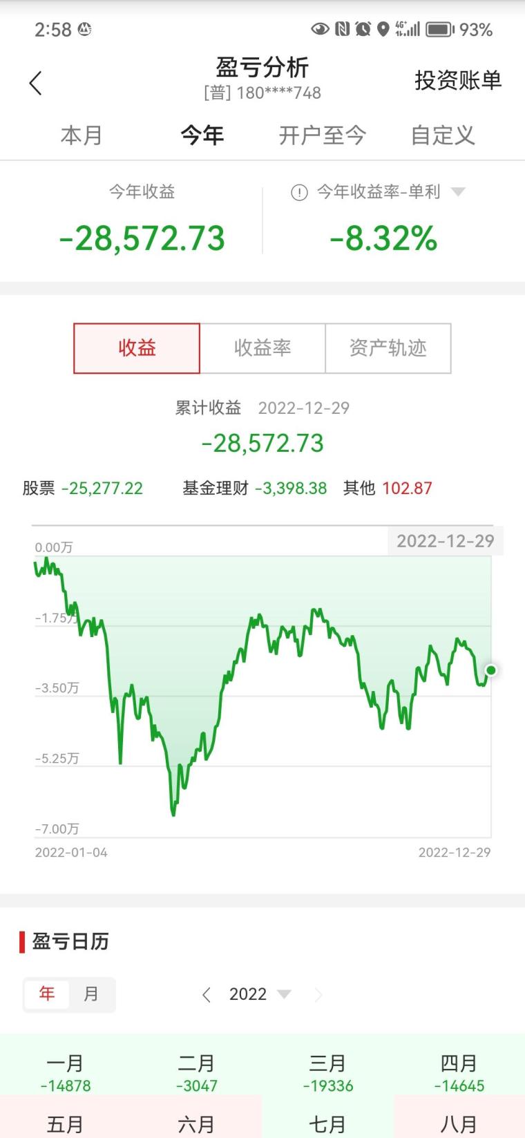 股票账户:全年亏3个多点
