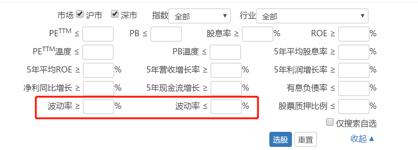 也可以在个股筛选器中,根据波动率的情况来进行选股,如图: