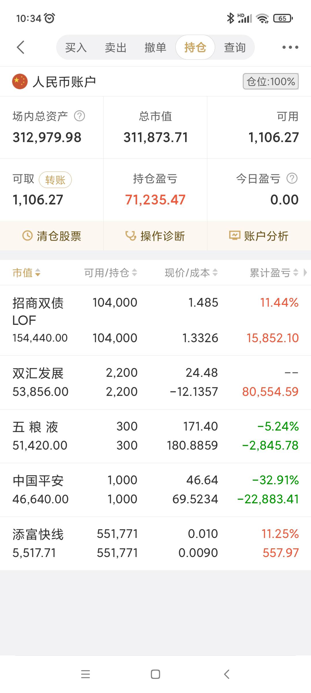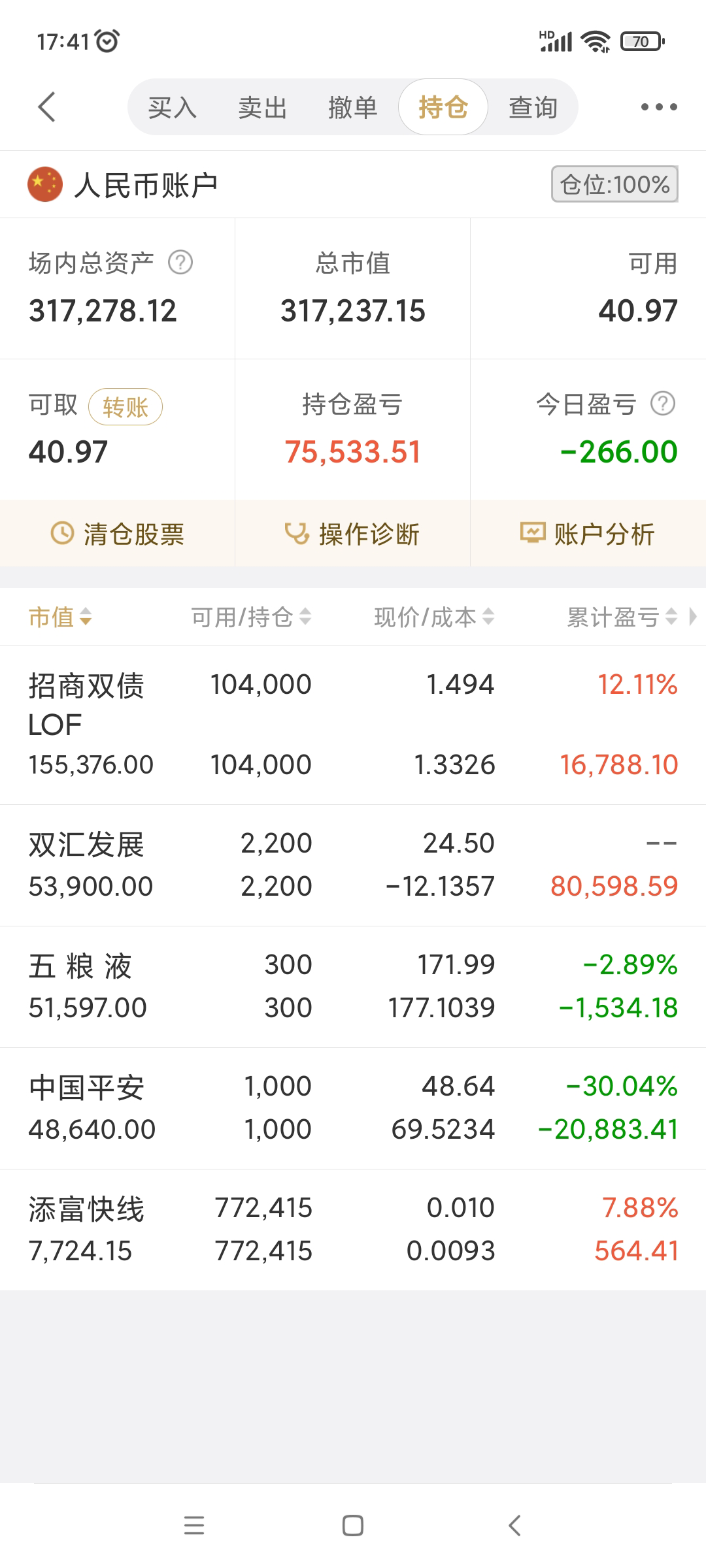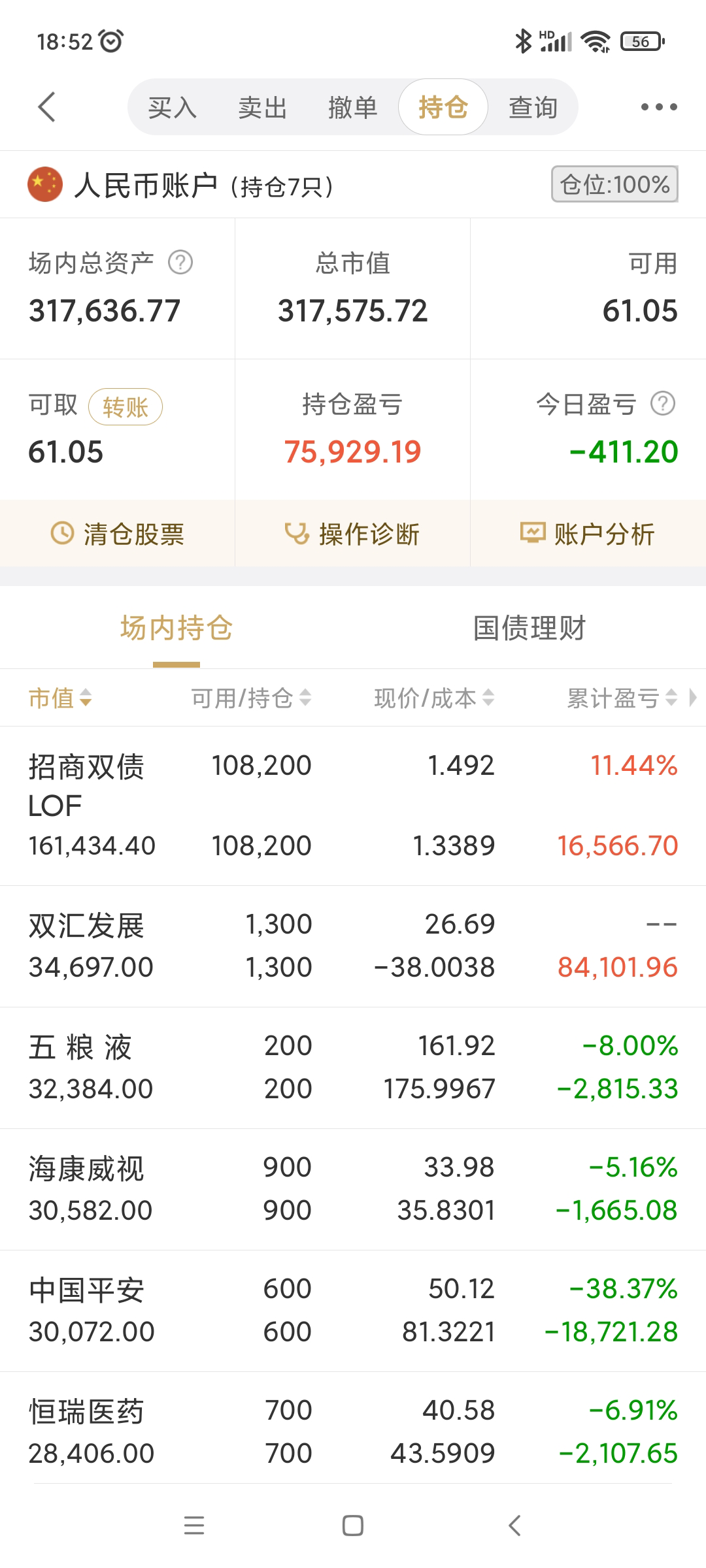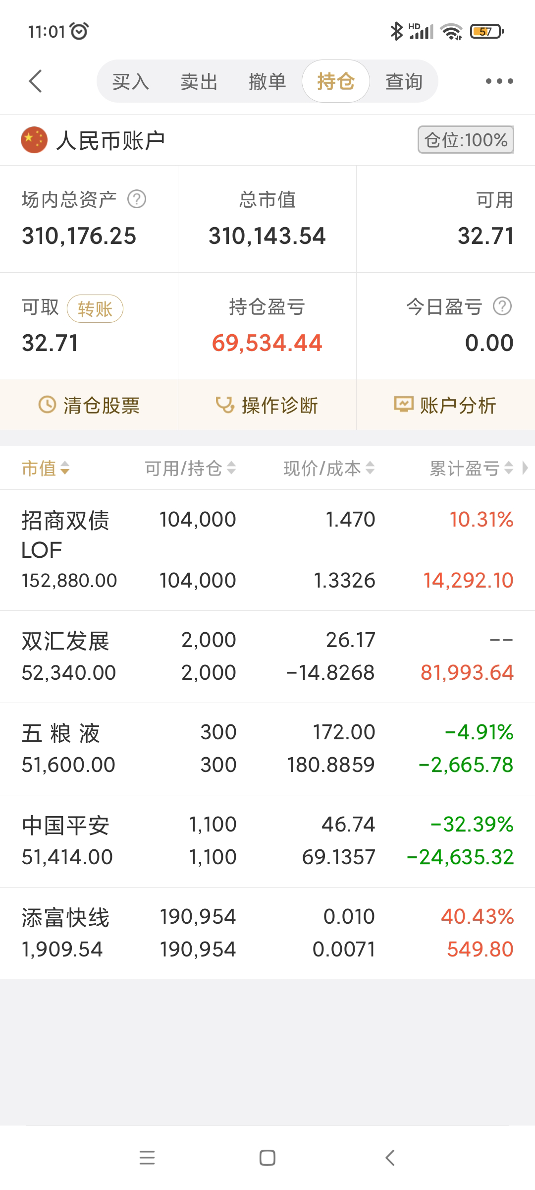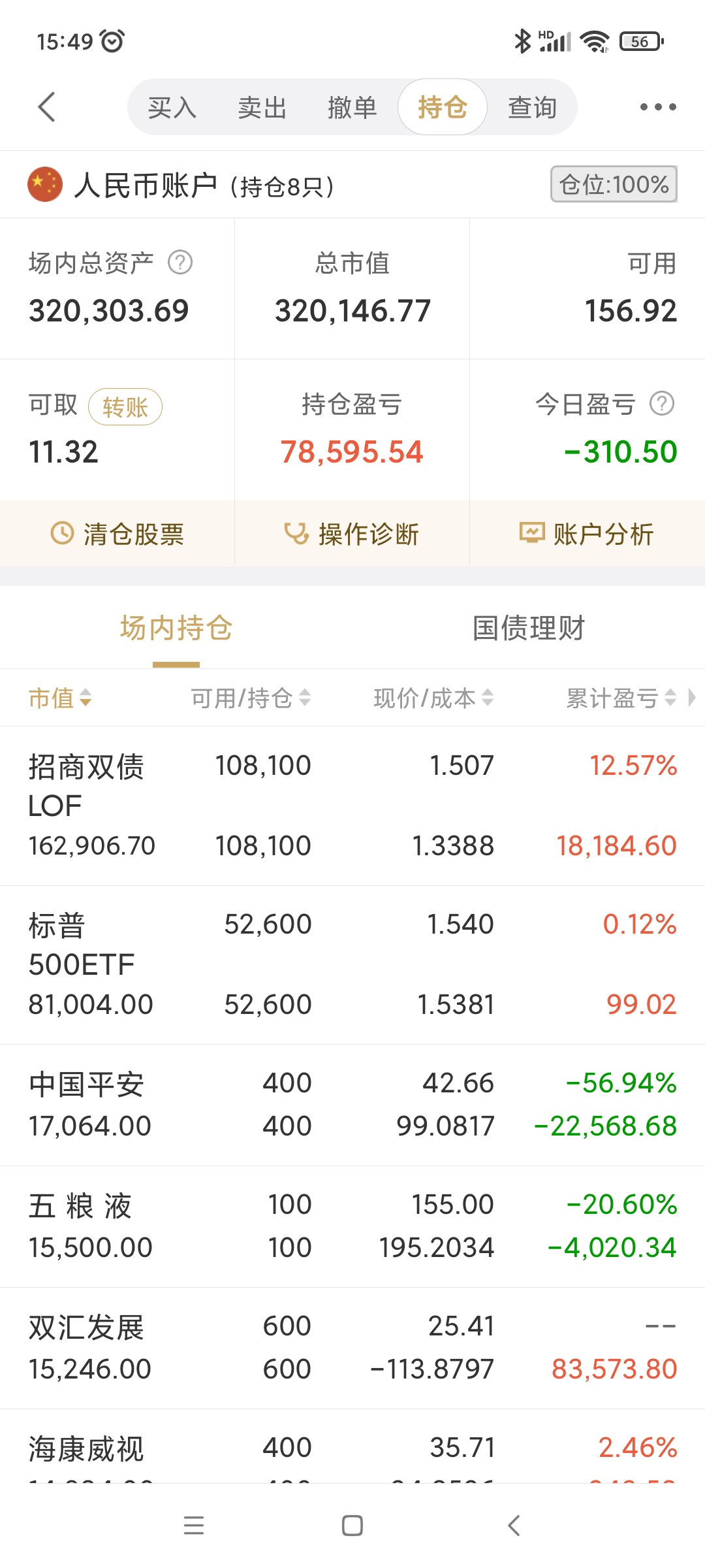 选股原因:选择中国平安是因为公司好,属于行业龙头,业绩长期向上,基本面无需置疑,被黑天鹅退市几率极小,股价具备长期向上趋势的确定性较强;选择双汇发展的原因与中国平安类似,不同之处是属于笔者的心水股,长期跟踪持有已经很多年,有感情舍不得换股。两只股票隶属上海交易所和深圳交易所各一只,配置后可以作为打新底仓。招商双债在同类基金里面属于排名前10,选它最重要的因素是场内交易量较大,流动性不存在问题;