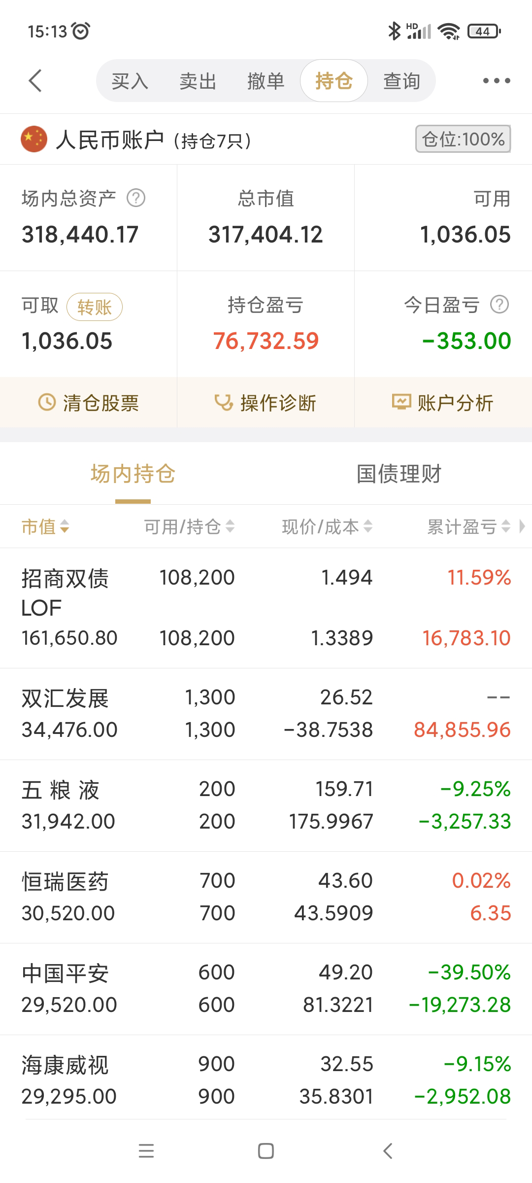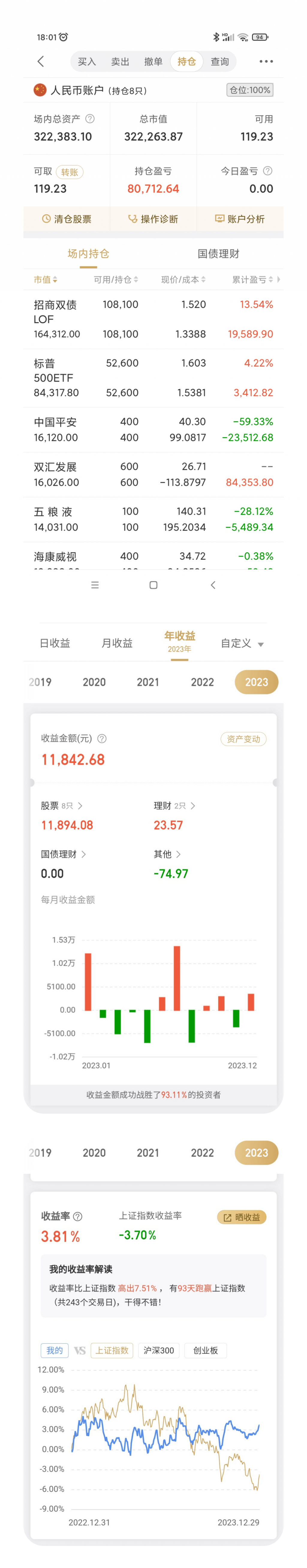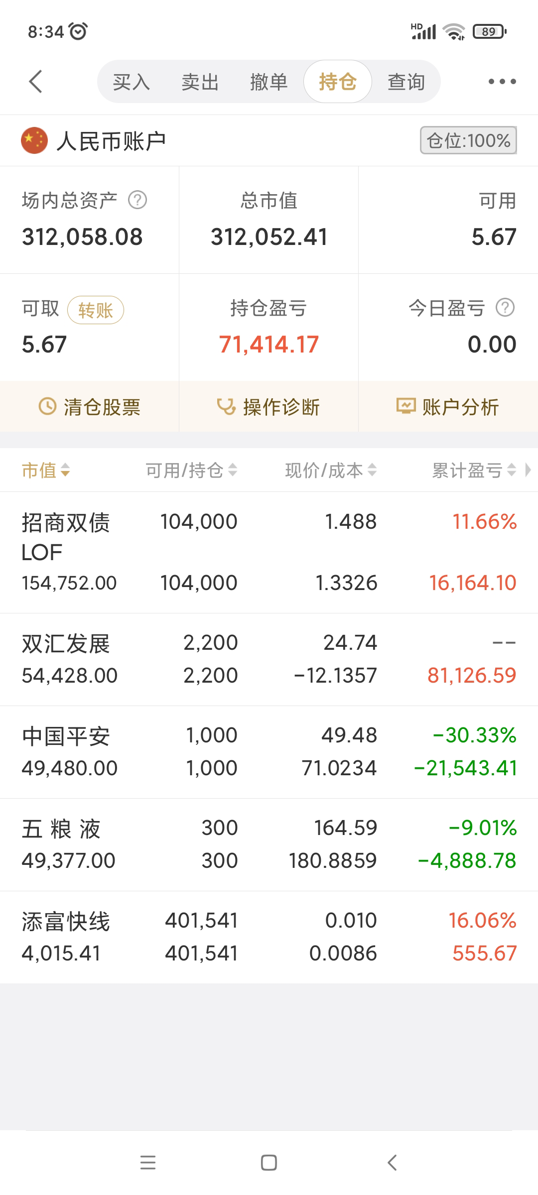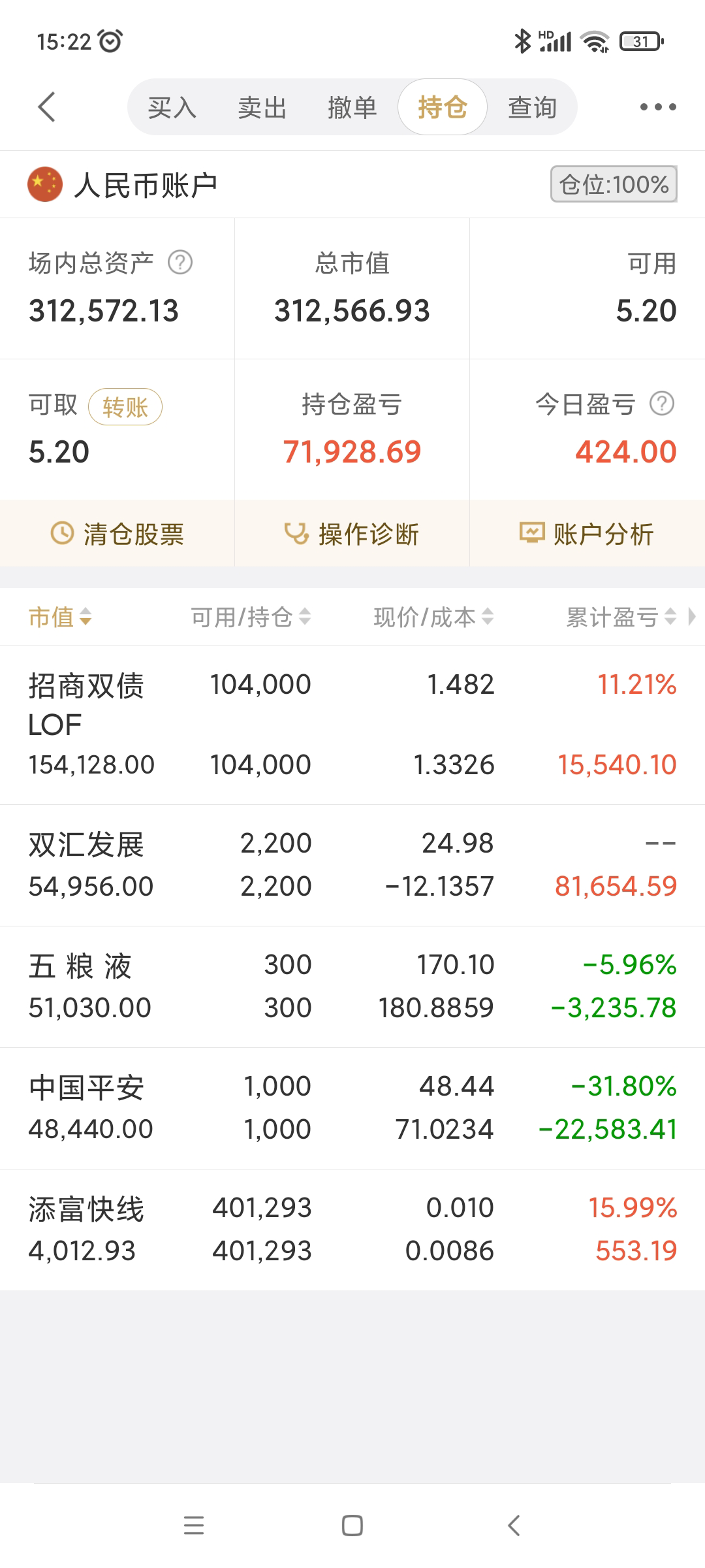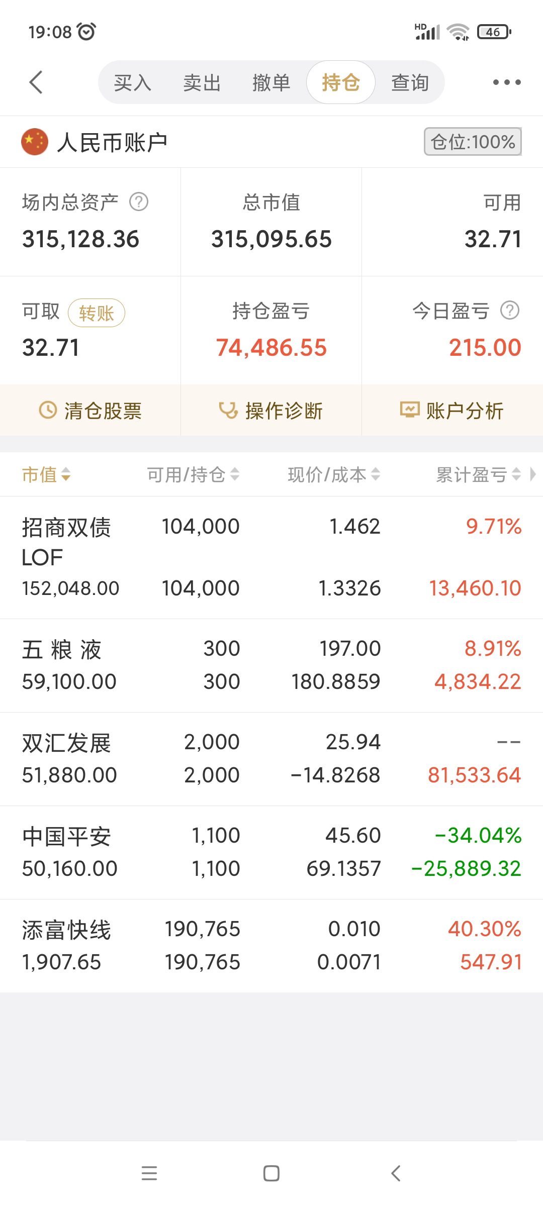 选股原因:选择中国平安是因为公司好,属于行业龙头,业绩长期向上,基本面无需置疑,被黑天鹅退市几率极小,股价具备长期向上趋势的确定性较强;选择双汇发展的原因与中国平安类似,不同之处是属于笔者的心水股,长期跟踪持有已经很多年,有感情舍不得换股。两只股票隶属上海交易所和深圳交易所各一只,配置后可以作为打新底仓。招商双债在同类基金里面属于排名前10,选它最重要的因素是场内交易量较大,流动性不存在问题;