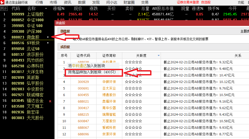 20240205我持仓主板的微盘股清一色都是-10%跌停,创业板的股票基本上都是-18%左右,由于主板的跌幅限制,创业板微盘股跌幅更大,微盘股指数可以将在倒数市值400附近主板的股票换成创业板的股票。