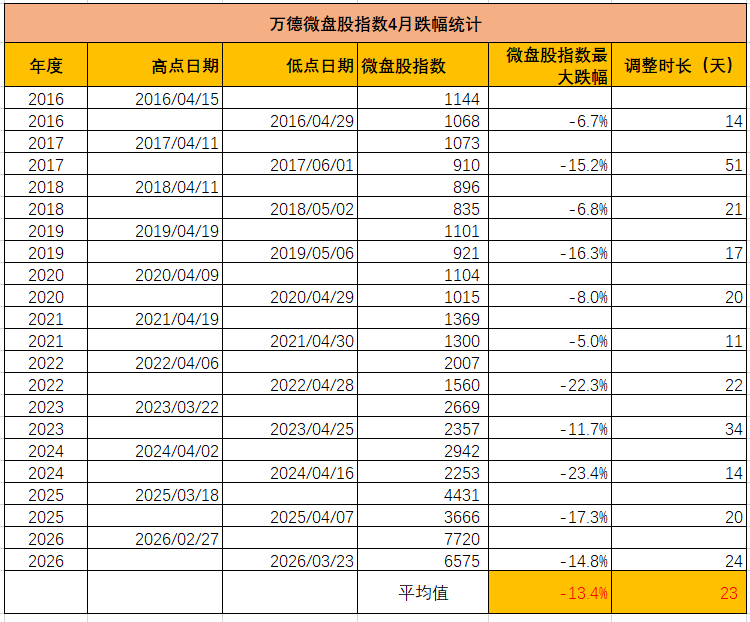 你这个表格显示除了2025年,每年4月都躲不过。。。2025年是小微盘大牛市,有大量化私募扩募的资金涌进小微盘,25年4月头大跌,后面资金强行把这波下跌半路顶起来了。。。今年。。。