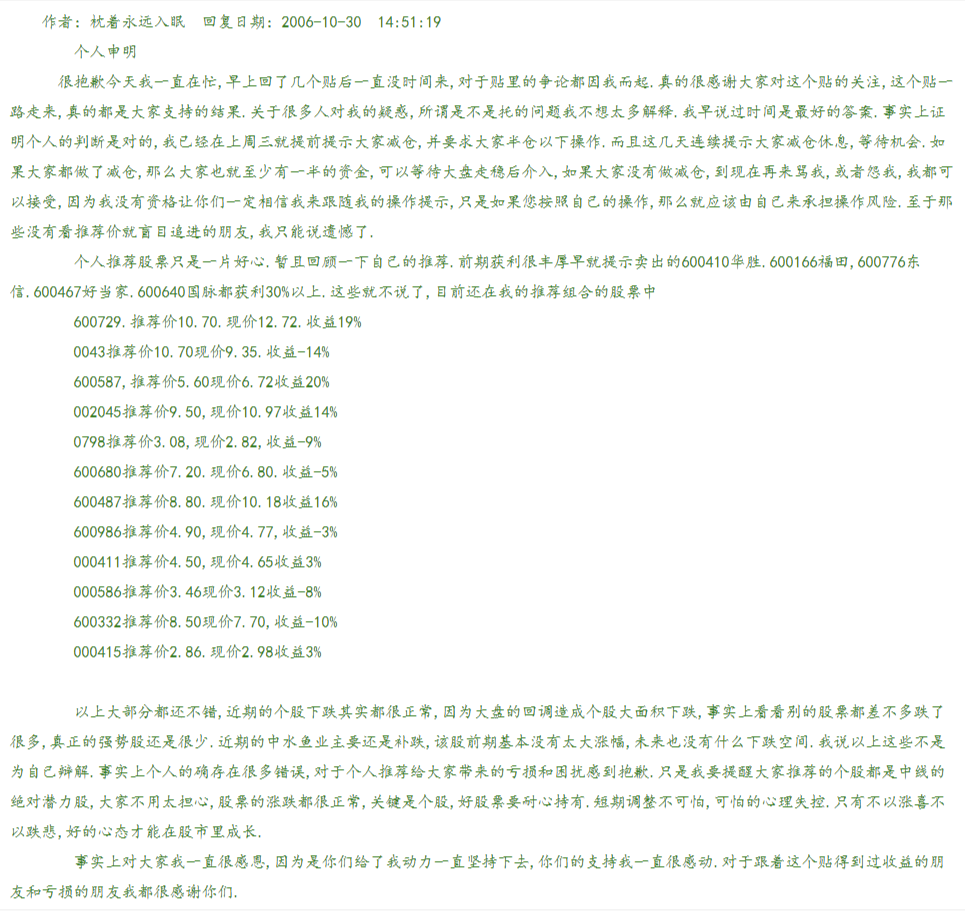每天都会把天涯股坛,尤其是枕着永远入眠的帖子刷很多遍,