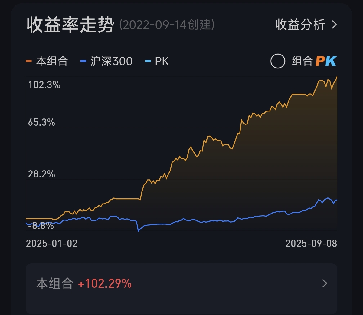 二、今年特别高原因之一是选中了上纬新材,其实也不是今年选中,是回测模型在去年就选中了,一直持有...