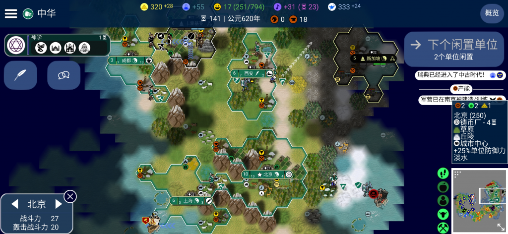 在现在随便一坨手游就好几个G的时代,手游能做到多小?20来M,也就20来M,加上5M的模组美化,30M到顶。那么30M能做出什么游戏?《文明5》,真的是《文明5》。 把电脑游戏《文明5》的所有内容搬进小小的20多M,让文明玩家随时随地地可以玩,真是一个奇迹。 这款游戏是某个吃饱了没事干的外国佬心血来潮在github发起的项目,得到了一堆支持者用爱发电,至今已经更新数年,游戏容量也从最初的6M膨胀到23M之巨,下载耗时从0.01秒延长到了0.1秒之久。这群家伙吃饱了没事干,发誓此为永久开源项目并且永不收费,并制作window、安卓、mac、Linux全平台版本,内置全世界几十种语言,妄想以最小的资源为代价将人类游戏文明中的魁宝《文明》的精神传承下去。