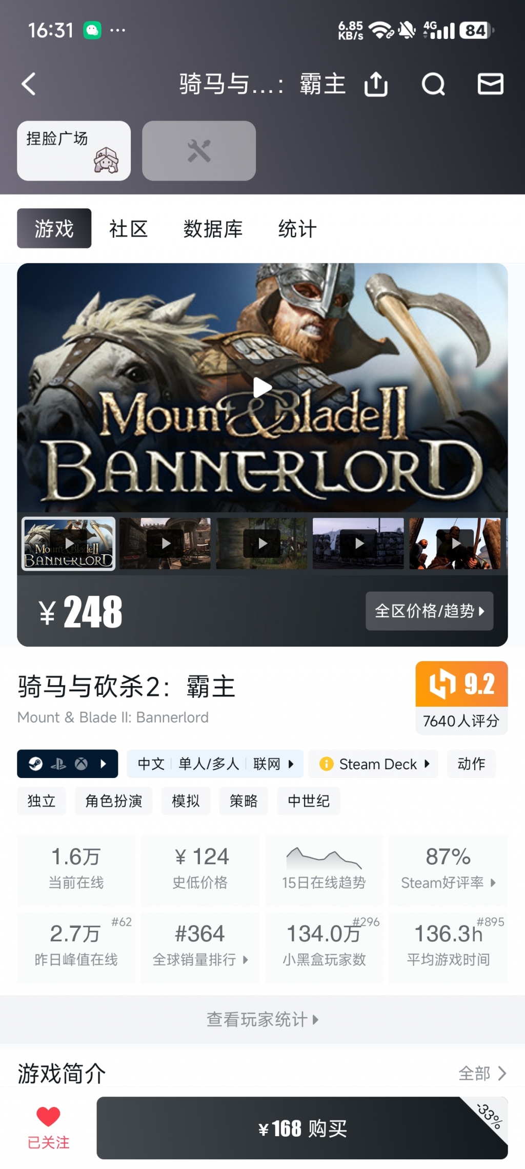 抱歉楼主,我跑题请教一下游戏方面的问题。我只是在20多年前玩过星际、反恐和魔兽。现在只是听说玩游戏用steam,但是百度出来的我看着都不像官网。我deepseek里搜出来的官网是https://store.steampowered.com/我在商店里面搜了一下骑马与砍杀,最高的标价是¥6000+,还有其它的版本,最低的也¥1000+又搜了一个文明2,标价从1000+到3000+现在游戏价格这么恐...另外可以下个小黑盒app,可以看到各个游戏的史低价,骑砍二的史低价是124。作为集思录的一员,买游戏也应该精打细算