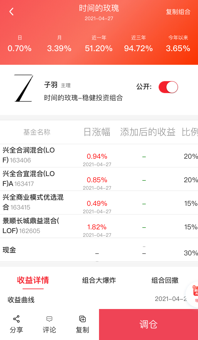继续优化基金组合,全换成LOF型基金,流动性更好些。七成进攻,三成防守。