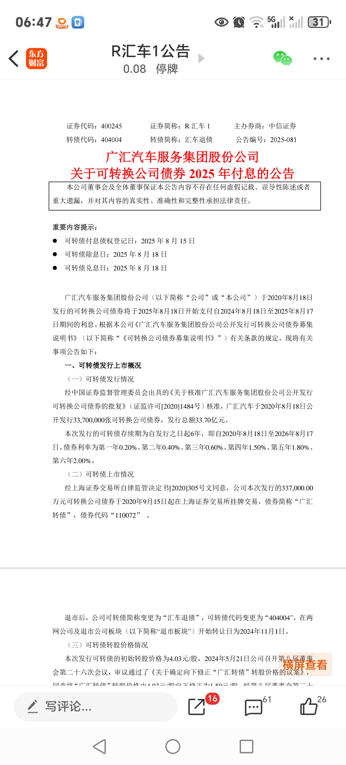 年报首页让人耳目一新,刊登的是董事会写给投资者的一封信,字里行间传递了不会退市的信息。总体感觉这次不会退市,即使退市也不会亏多少。