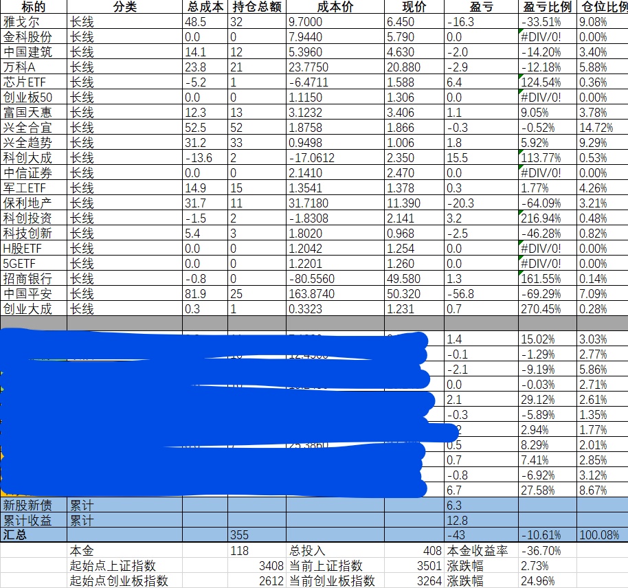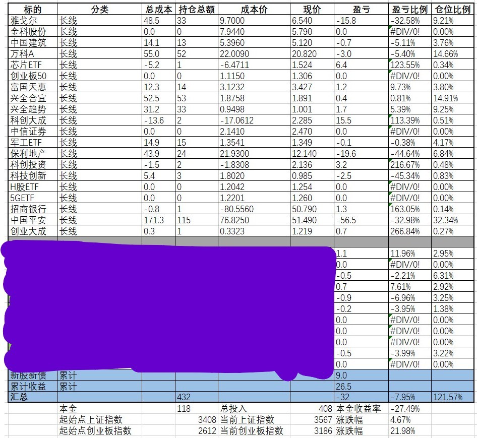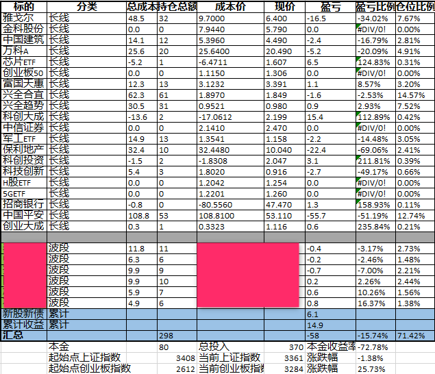 玩了大半年几乎回到了原点,目前拖累收益的反而是低估值的地产和保险,主要问题是没有及时降低场内杠杆。但低估值标的有着稳定的分红,即使被套也可以通过分红在一个长期间中摊薄成本并逐步盈利。目前计划仍是持有等待。