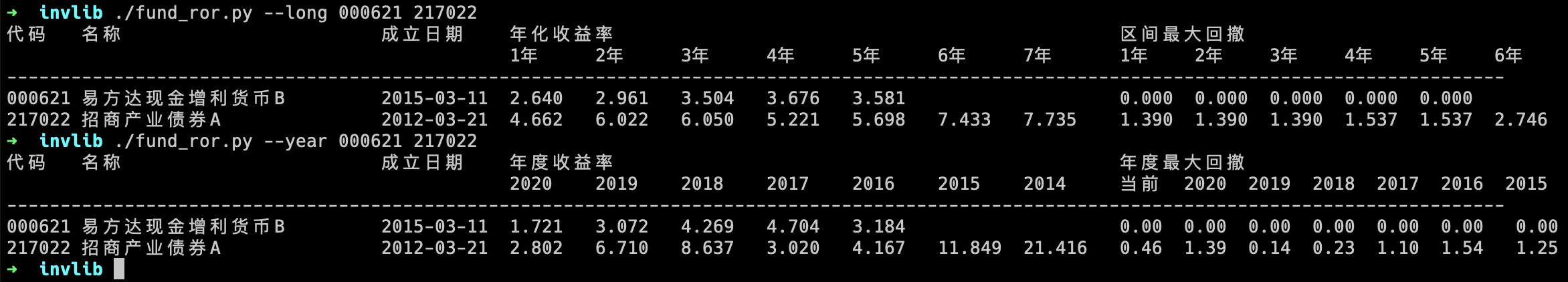 有一些额外参数,用于展示不同口径的收益率,可以执行 ./fund_ror.py -h 看帮助