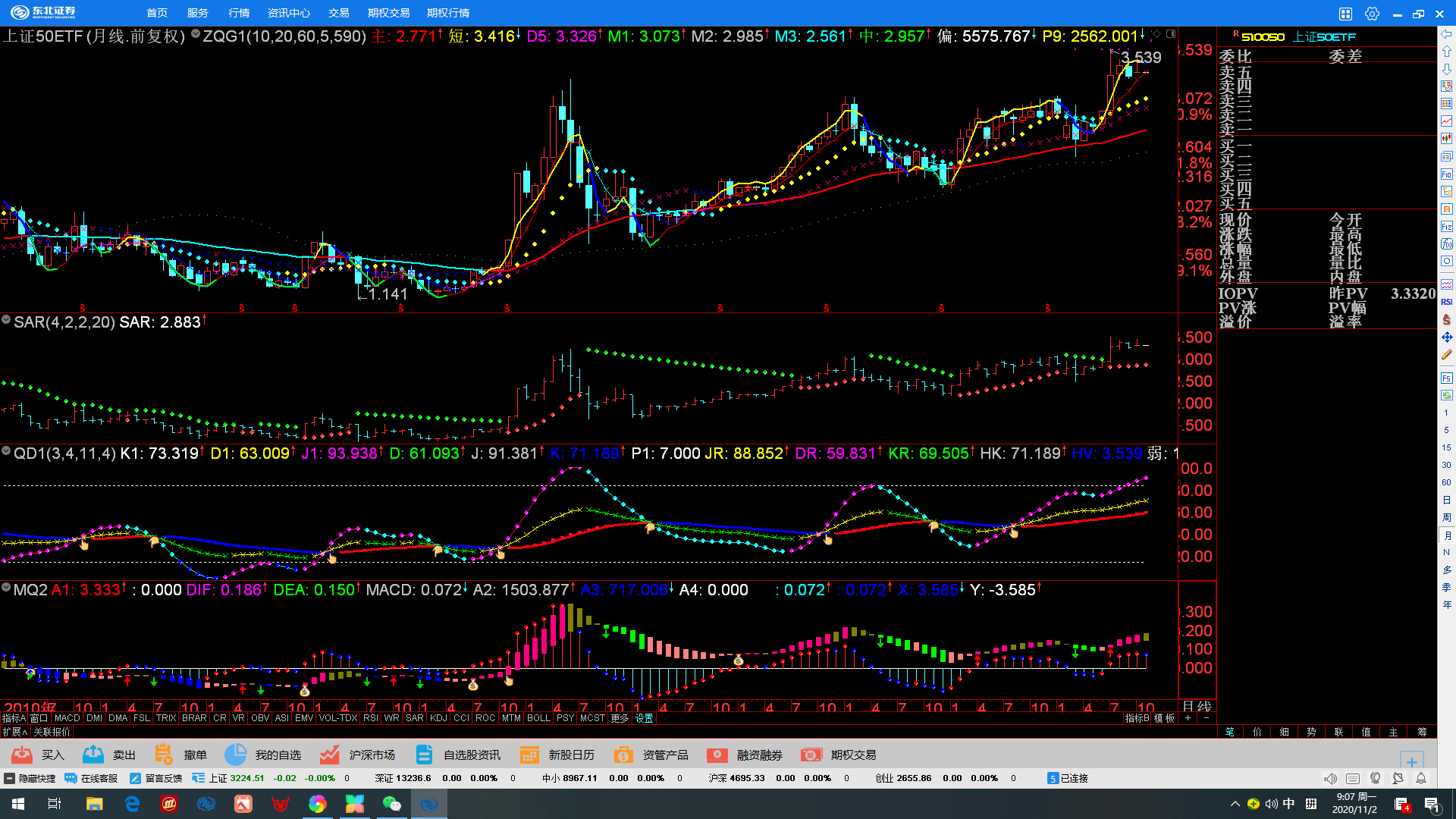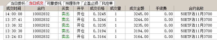 三月虽然多单没有完全解套,但转成了150张的卖购空单和80多张实值买沽空单和100张超虚买沽。下跌后了结空单,又改成全仓的多单,所以3,4,5和6月都是获利。实际上此时是在最危险时候,虽然原则是不加杠杆,有行权能力。但没有认知到做空的不确定性。在7月50ETF大约是3.2左右,将卖购开到了110多张,买沽当时算是超实值的空单也几十张。7月6日的大升,虽然离爆仓还很远,但对自己打击非常巨大。此时才明白了做空的不确定性。当时已经有些绝望。一就是止损再不入股市;二是不理了,听天由命。后与太太商议,择机用掉了今年的获利止损一部分,这样再继续来。