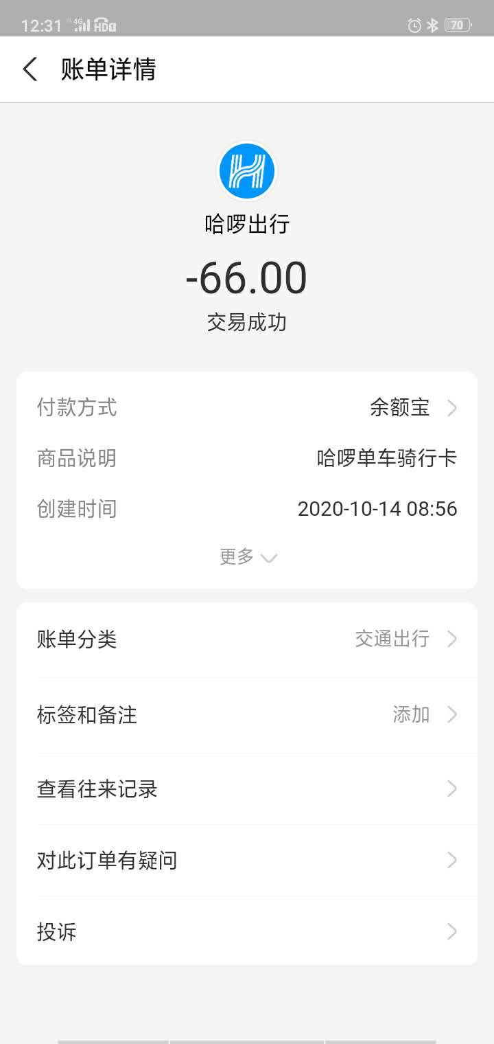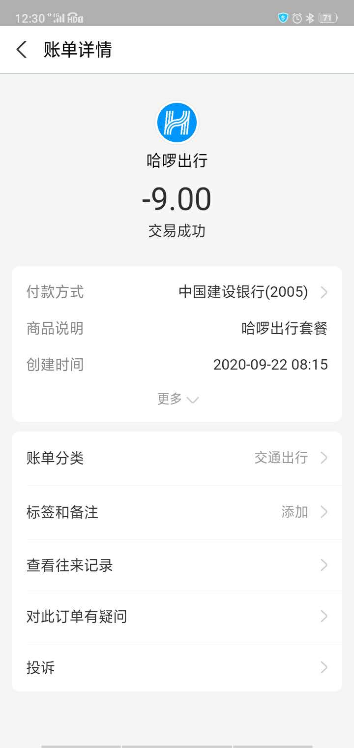 每天都有使用哈罗共享单车去运动,开了半年卡。9月22日早上在使用结束后,发了一张一个月优惠卡支付单9元,我是半年卡,根本无用。但它可以自动打开支付宝。支付宝会自动默认刷脸支付。我只拿起手机,还没有对到脸,在腰部,就刷脸成功了。后来还找不到这张单在那里。