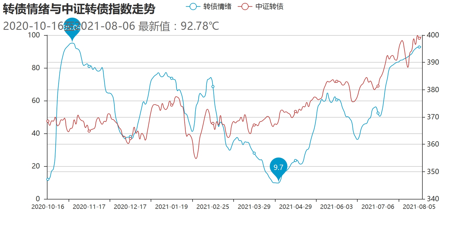 另外,今天可转债情绪温度计80度,转债估值温度67度,还处于偏高位置。