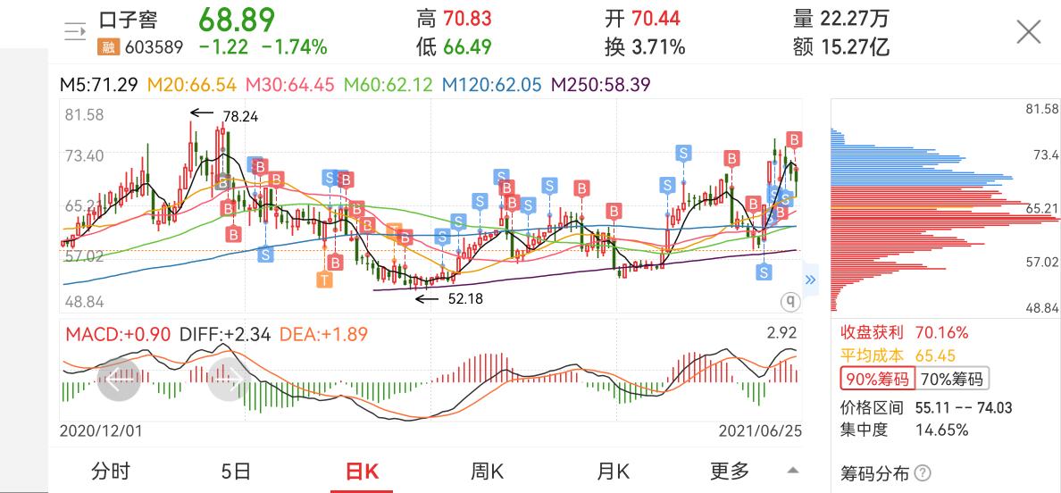 比如今年的海螺,我54买58卖,51买54卖,48买51卖。后面你也知道了,48一路崩到41,我就48买,44买,这样一路慢慢建仓了。但是跌到42,我成本也在42了。