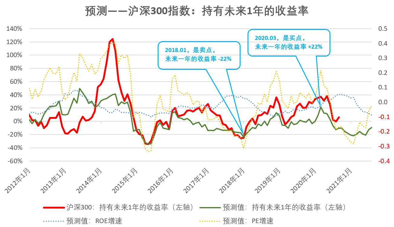 股指变化,可以用股权风险溢价(ERP,1/市盈率 - 1/10年期国债收益率)预测未来1年的走势