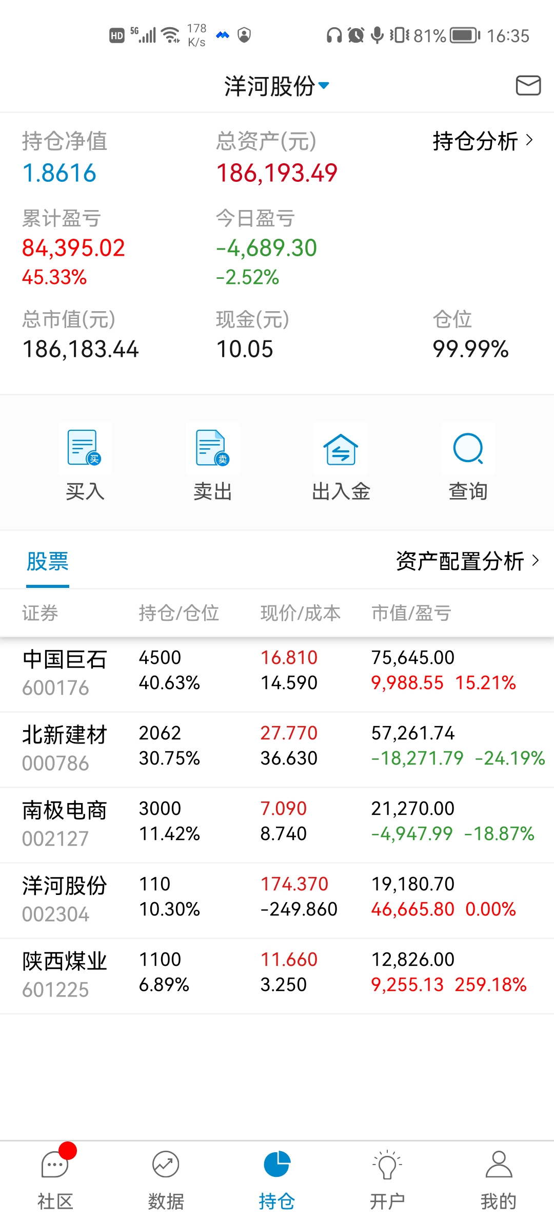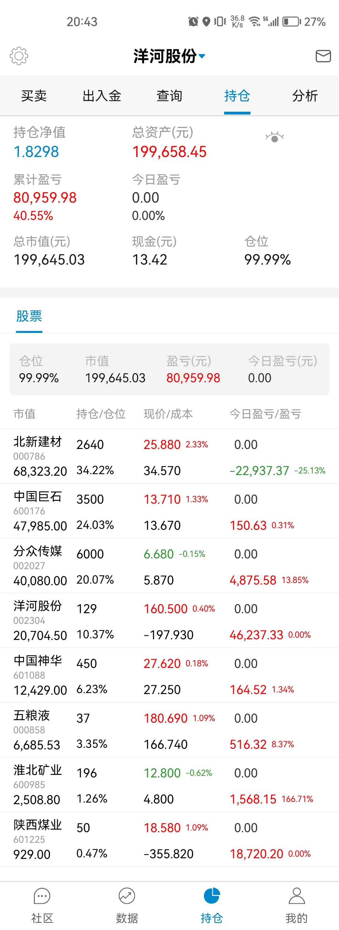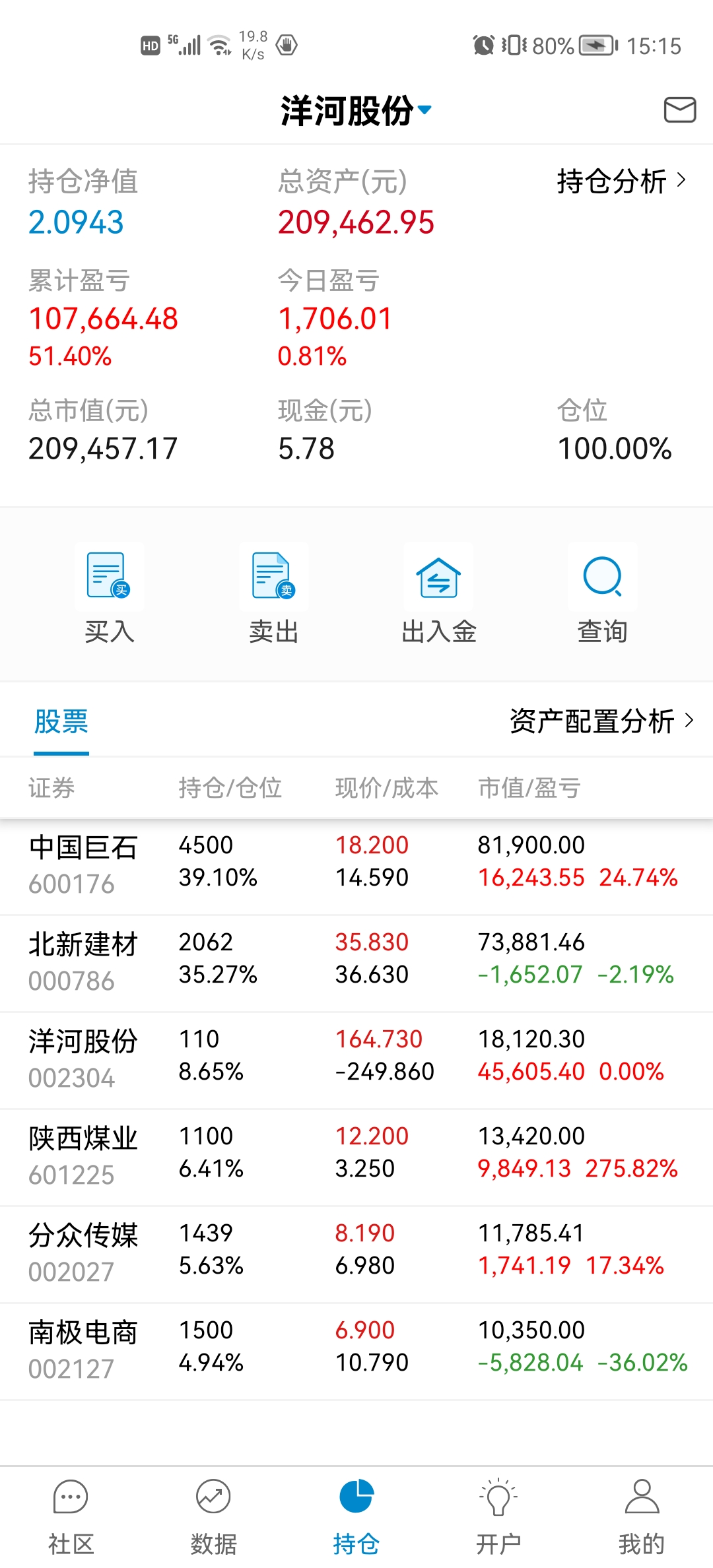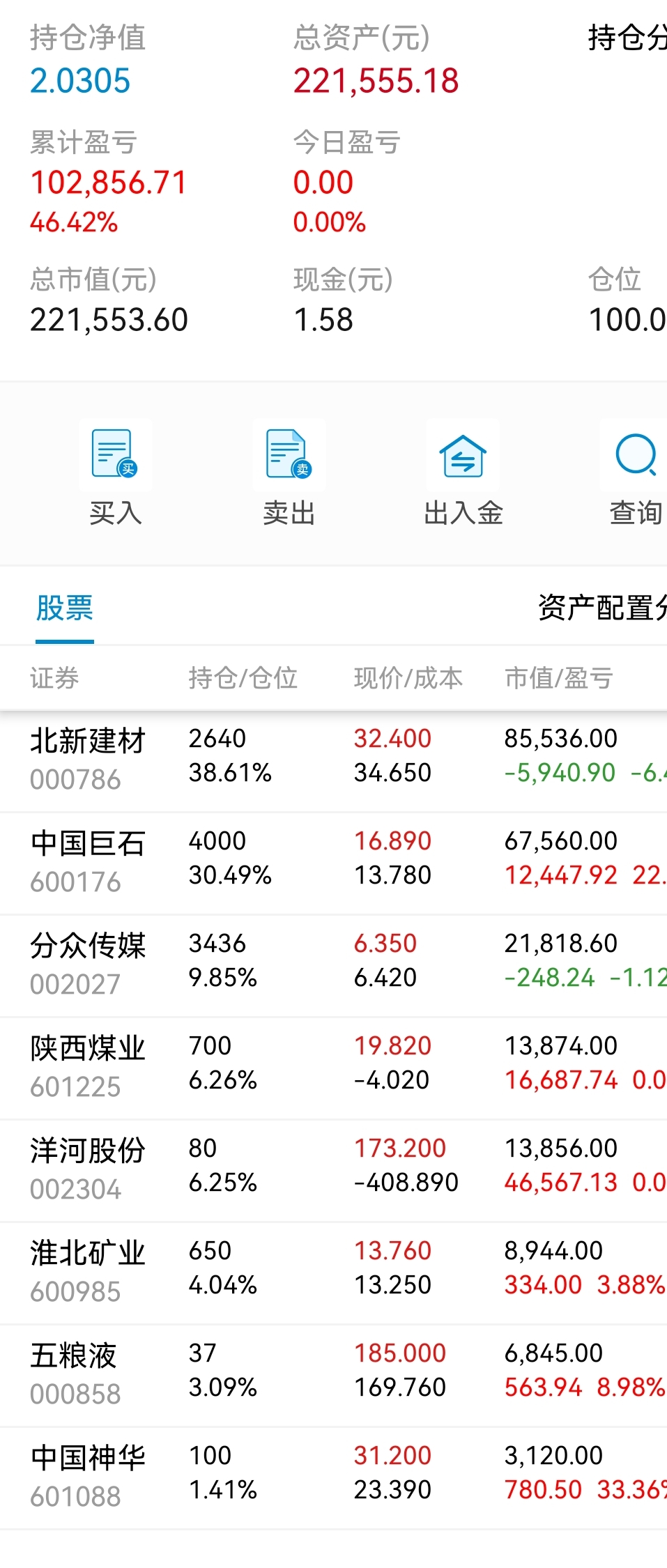 本周操作:30元挤点零花钱买入北新建材。